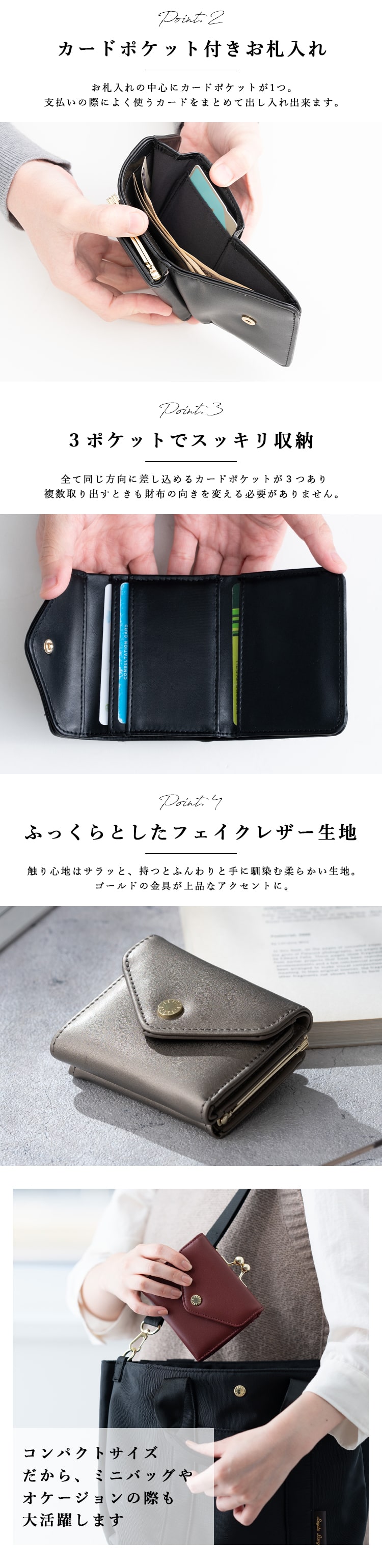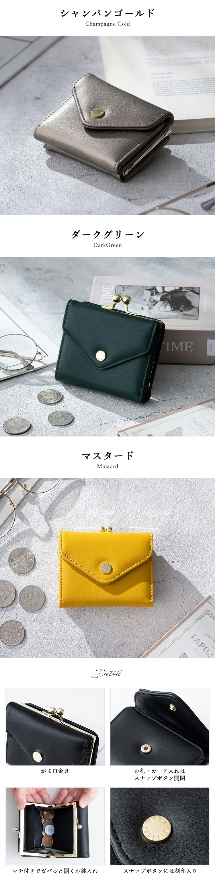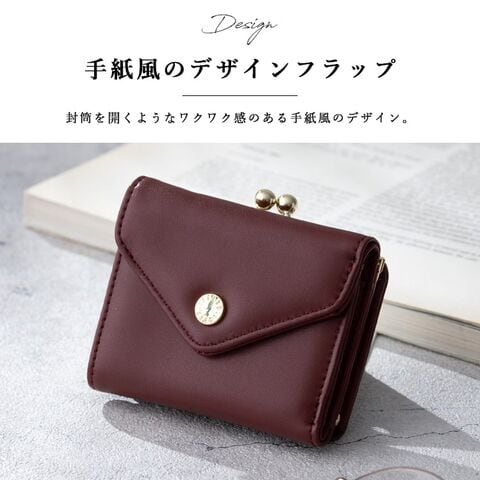 封筒を開くようなワクワク感がある、メール型の三つ折りがま口財布。