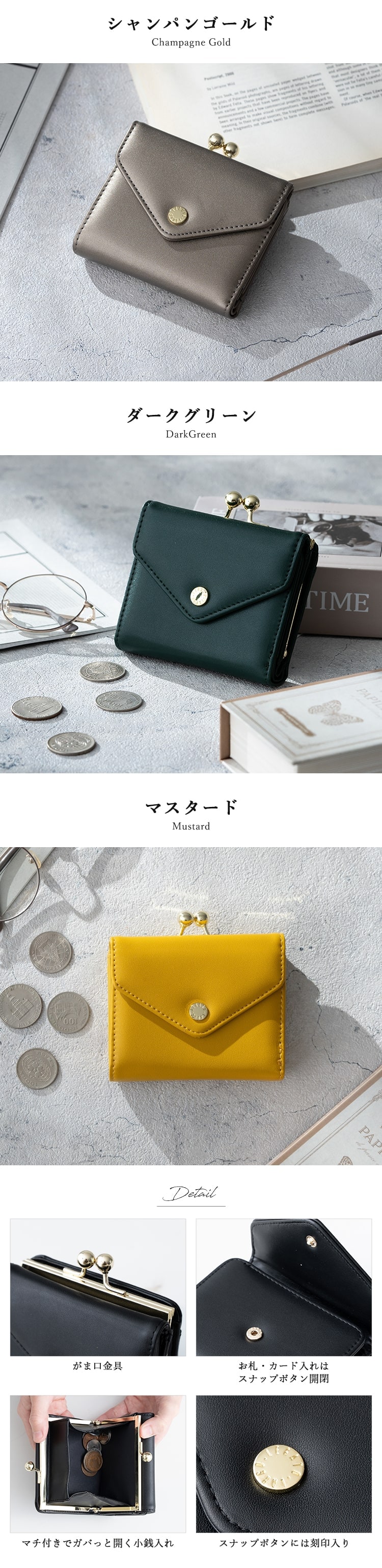 開閉:がま口、スナップボタン