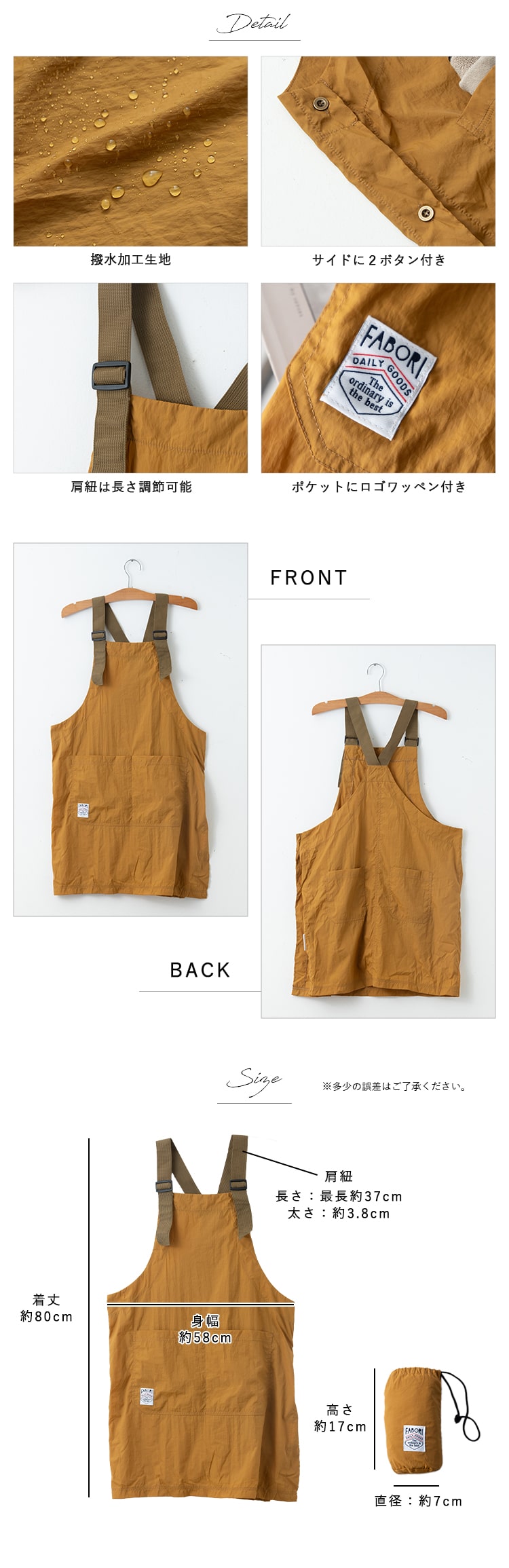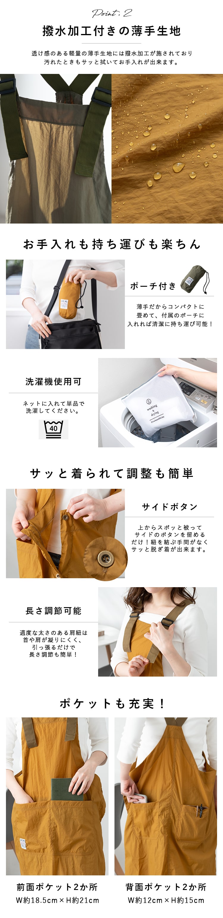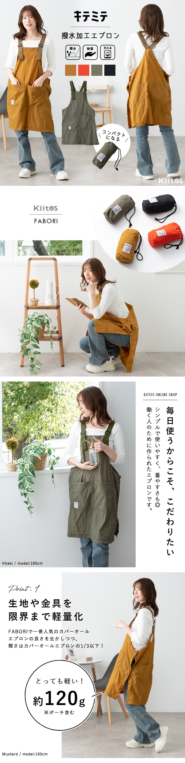 エプロン おしゃれ 撥水 超軽量 かぶるだけ コンパクト 持ち運び アウトドア 保育士 キテミテ 洗える 調理実習 ワークエプロン レディース メンズ ギフト Khaki