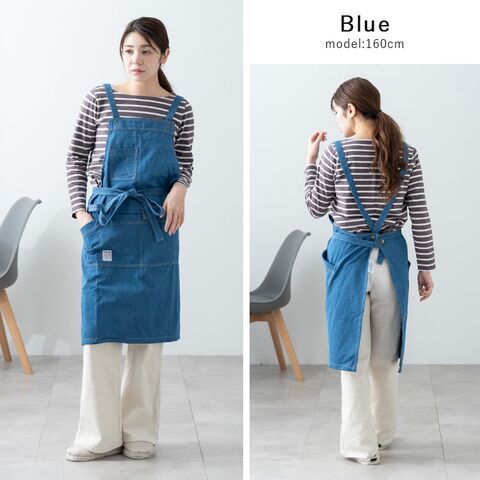 エプロン デニム かぶるだけ 保育士 大人 おしゃれ 仕事 ワークエプロン 綿 メンズ レディース バッククロス カフェエプロン シンプル 男女兼用 母の日 ギフト Blue