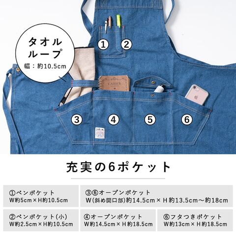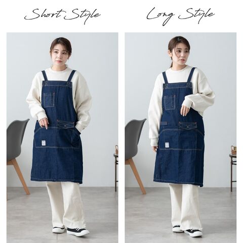 本物のデニム生地にウォッシュ加工を施して着心地よく仕立てたデニムエプロン。