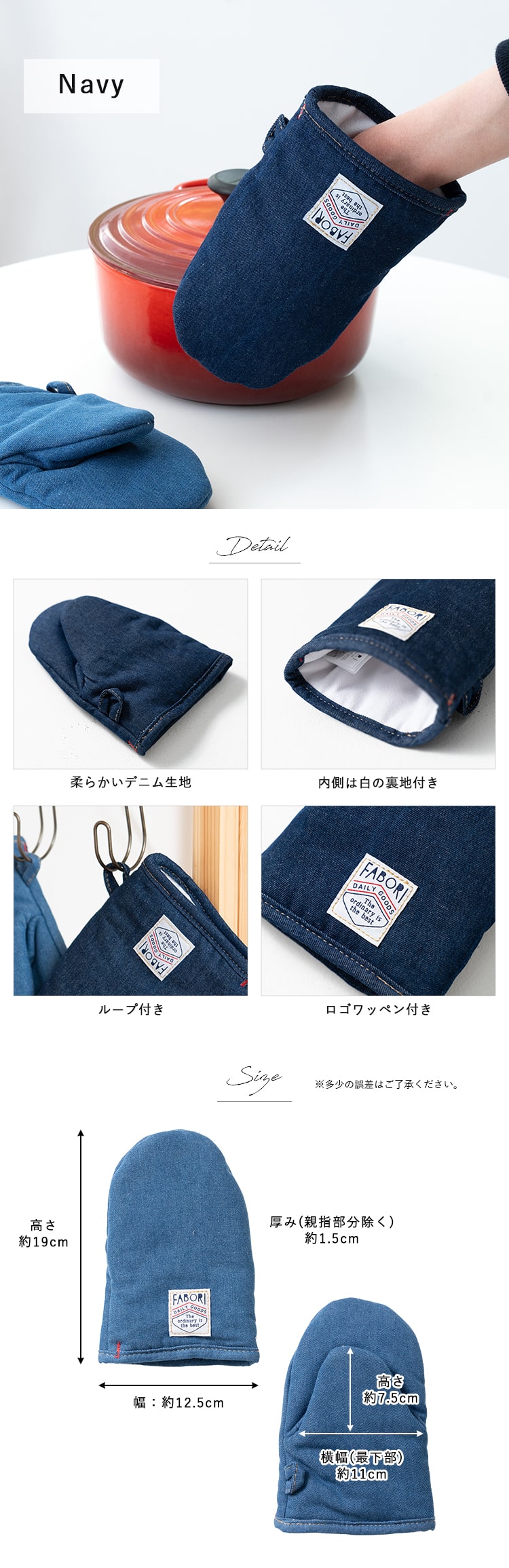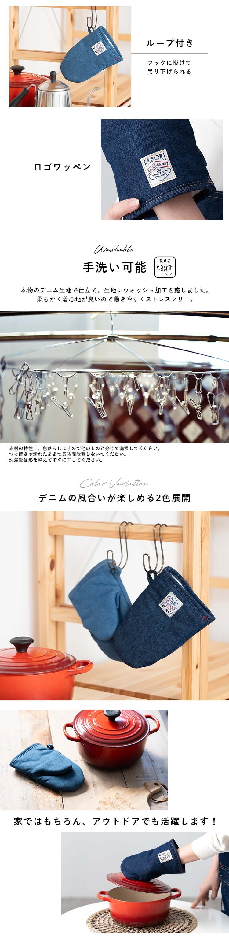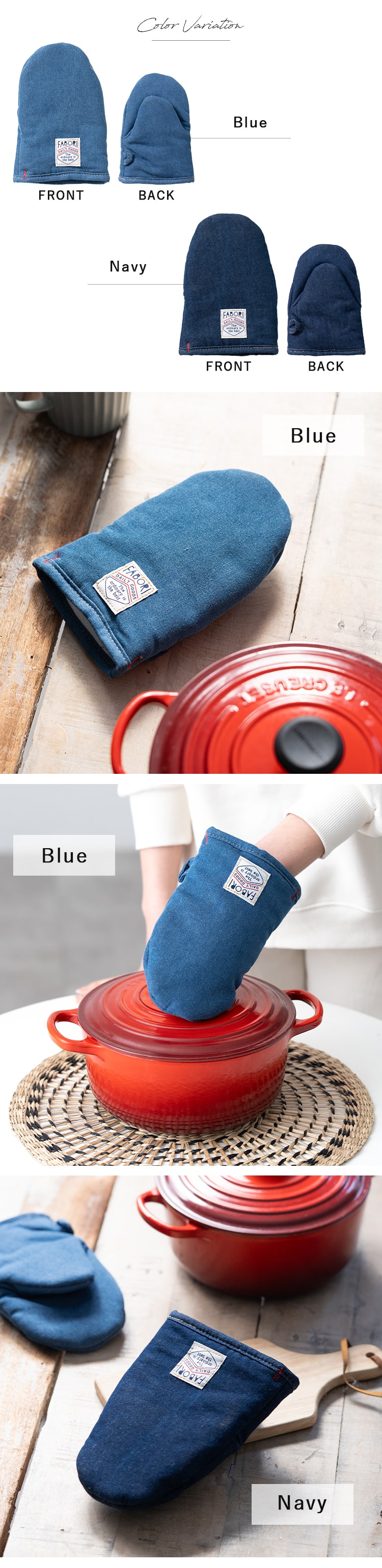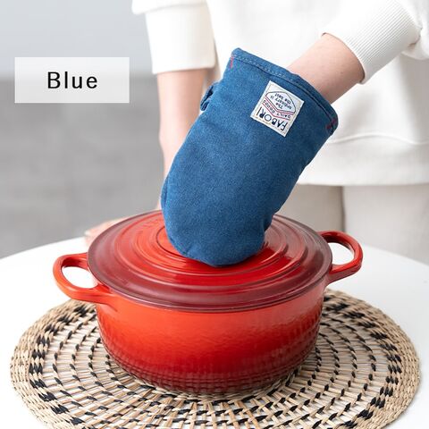 オーブンミトン デニム 鍋つかみ おしゃれ かわいい 耐熱 北欧 コットン アウトドア 洗える 厚手 プレゼント ギフト Blue