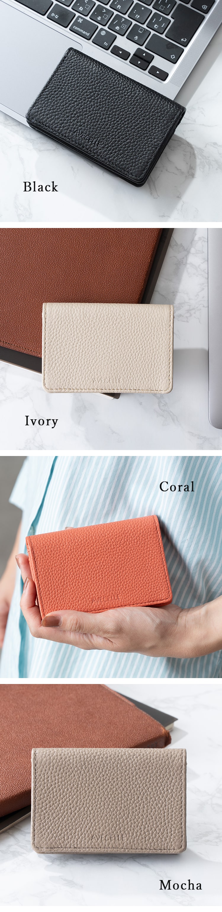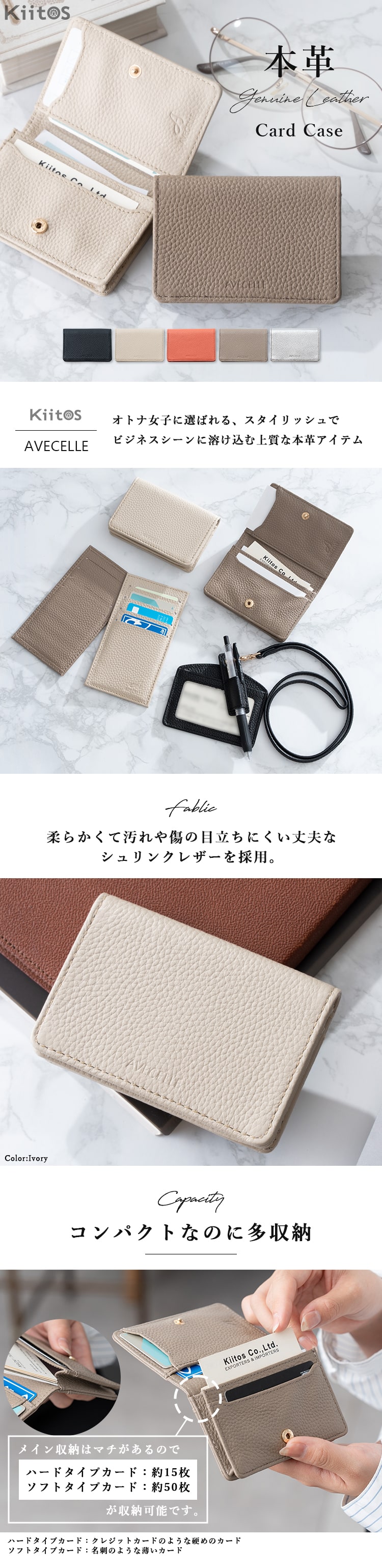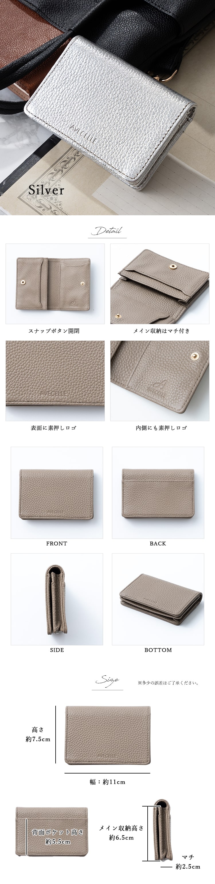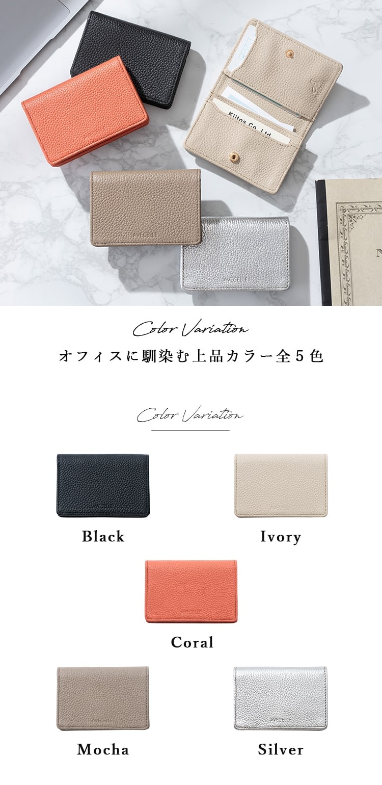名刺入れ レディース ブランド おしゃれ かわいい 上品 本革 牛革 ギフト AVECELLE カードケース シュリンクレザー 定期入れ 20代 30代 40代 Silver