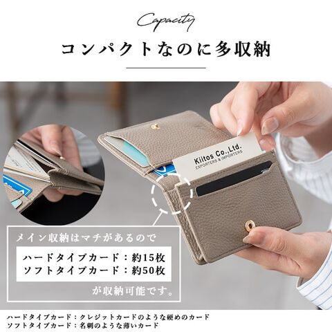 コンパクトな見た目以上の収納力で、メイン収納はマチがありハードタイプカードが約15枚、ソフトタイプカードが約50枚入ります。