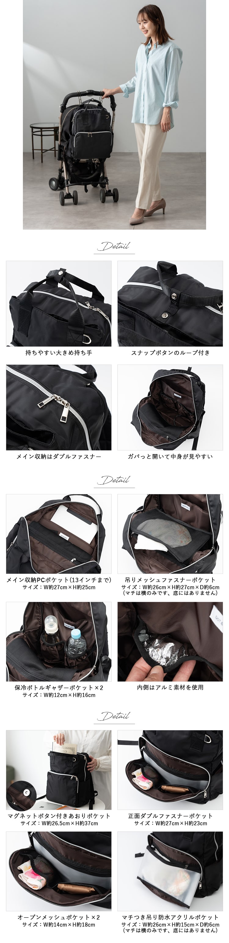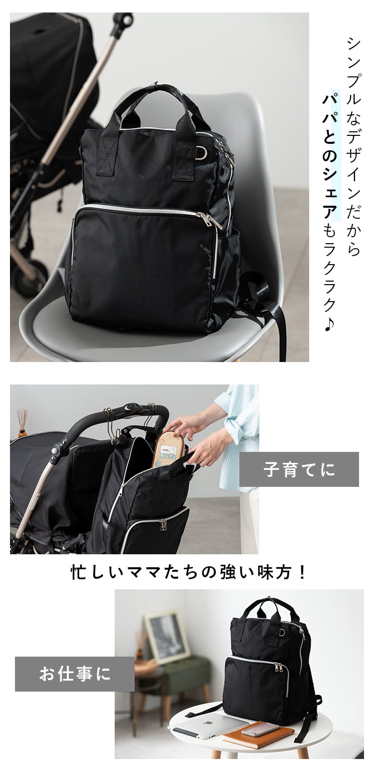 ママもお仕事もこれひとつで。長く使える多機能マザーズリュック。