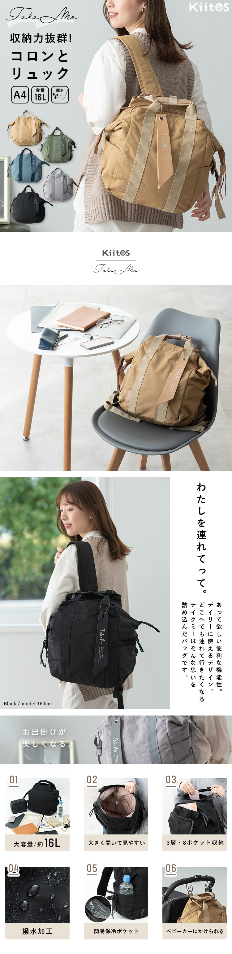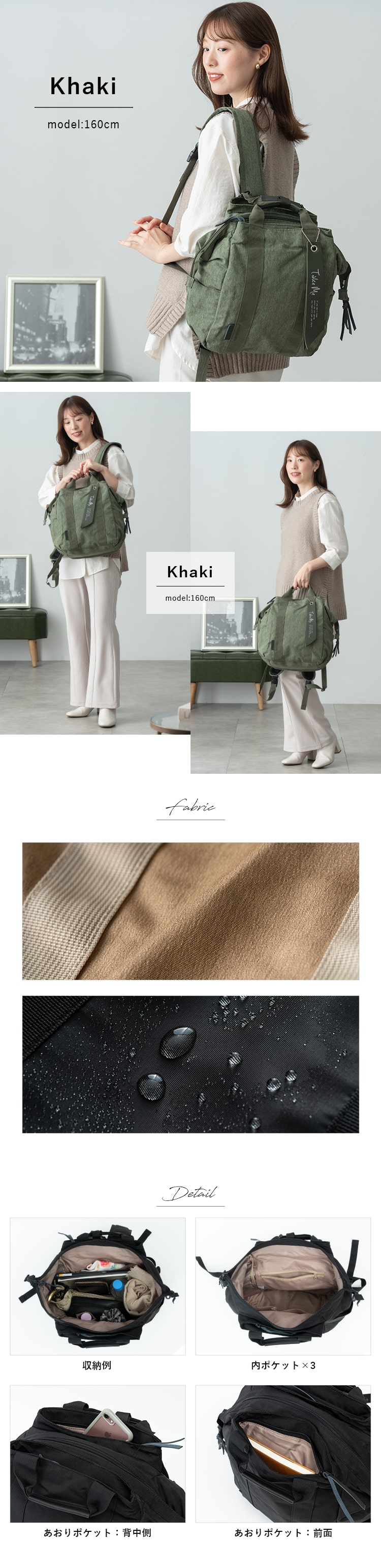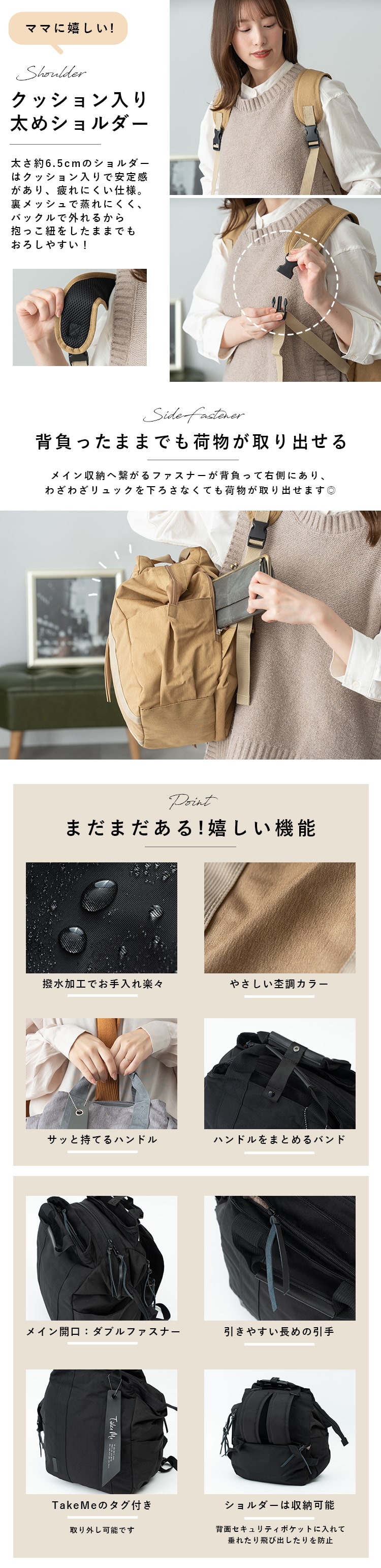 リュック レディース 大容量 マザーズバッグ 撥水 a4 通勤 通学 軽量 シンプル おしゃれ 大人 8ポケット Take Me 16l ギフト Khaki