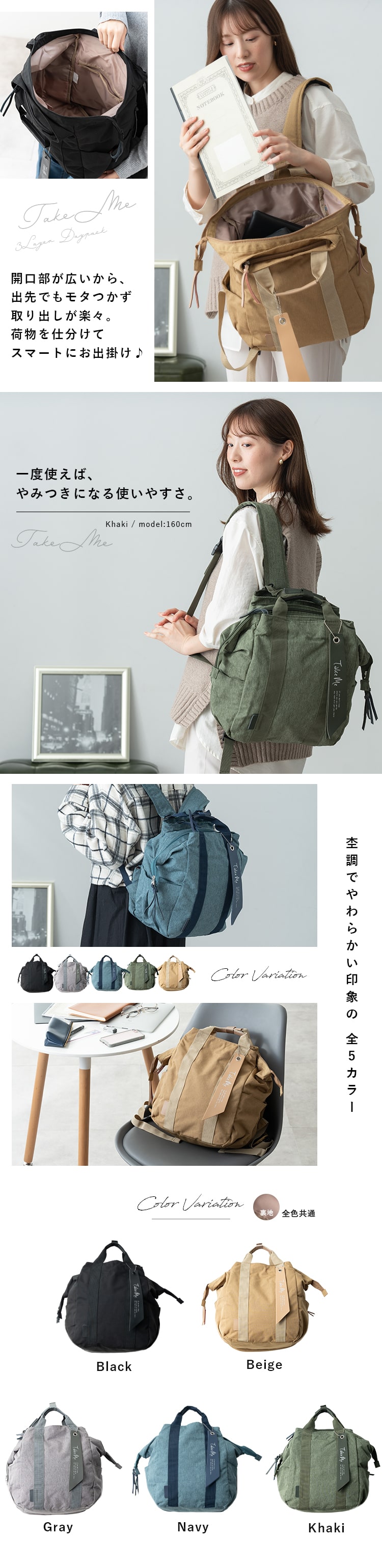 どこへでも連れて行きたくなる。テイクミーはそんな思いを詰め込んだバッグです。