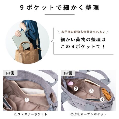 トートバッグ レディース 小さめ ブランド Take Me 2way ショルダーバッグ 撥水 軽量 b5 9ポケット マザーズバッグ Khaki