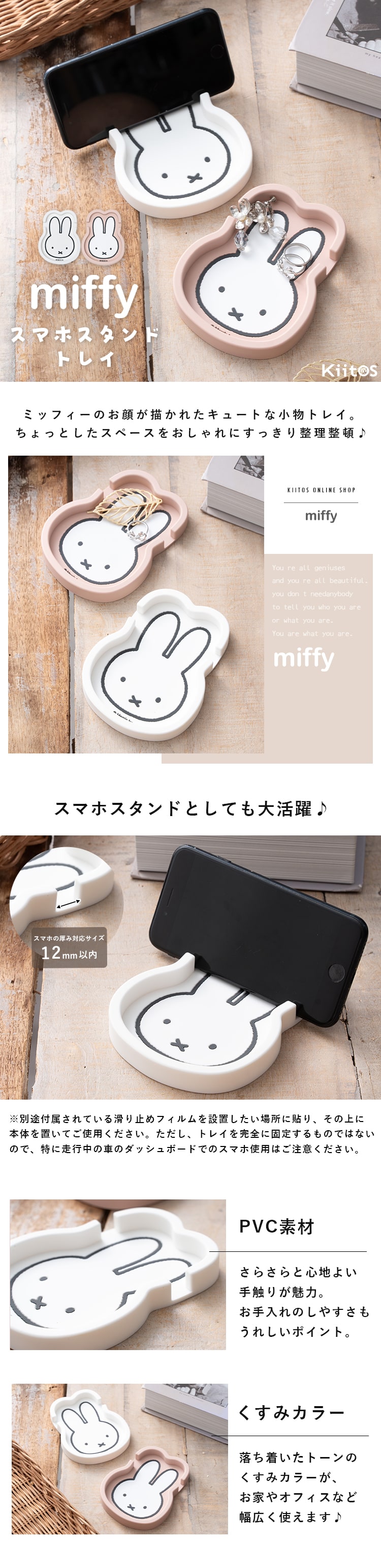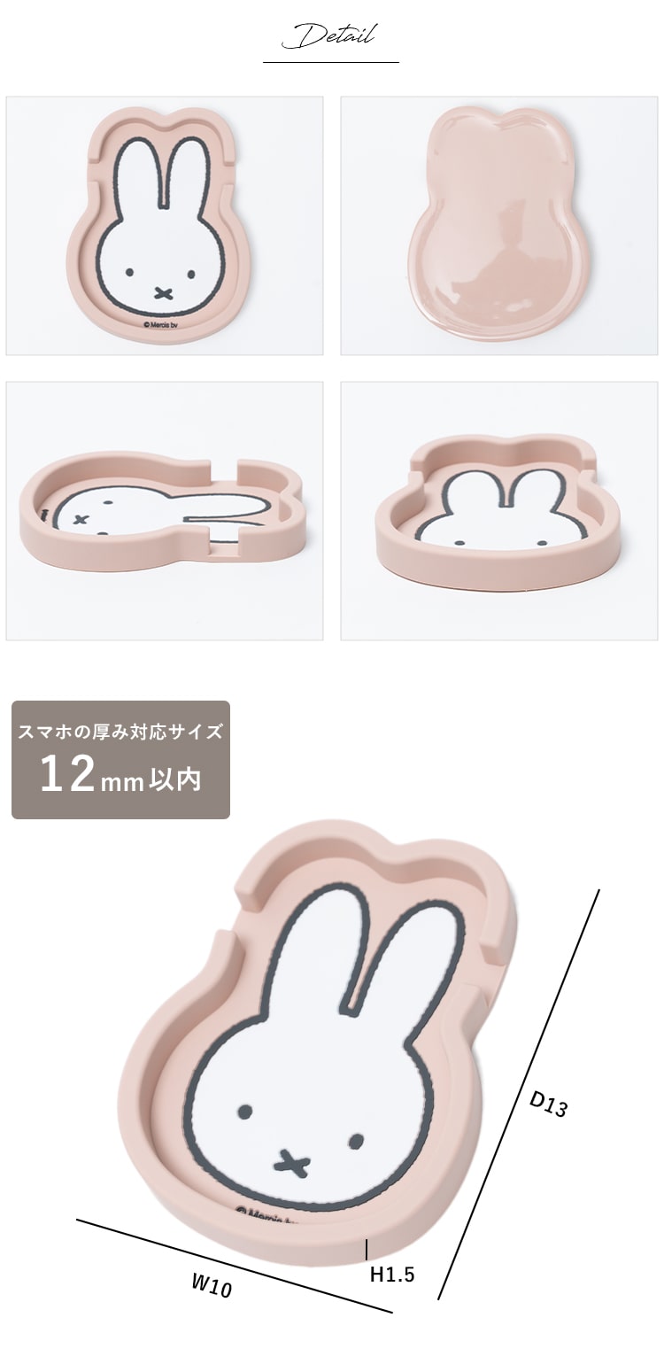 ミッフィーのお顔が描かれたキュートなデザインのスマホスタンドトレイ。