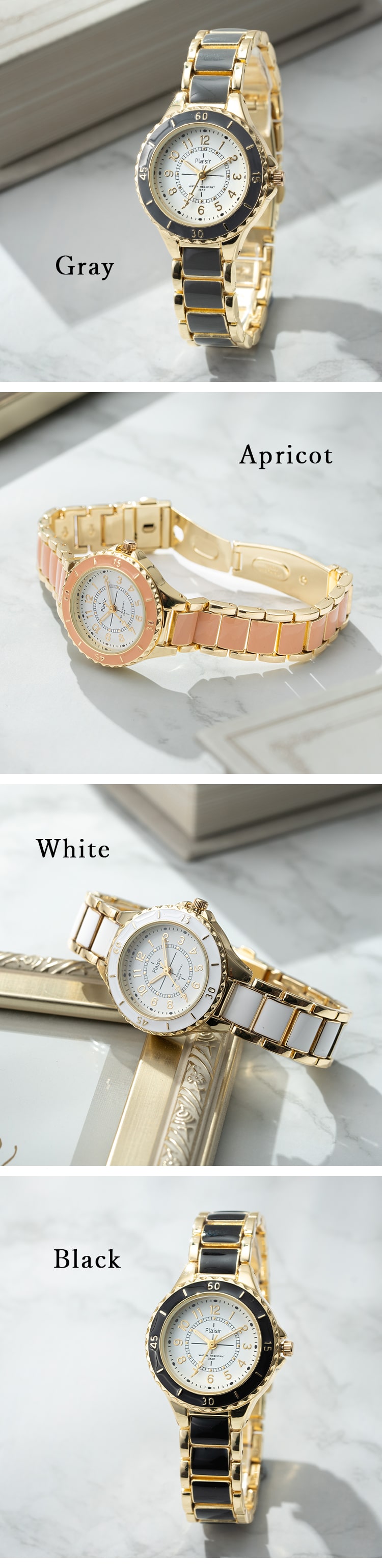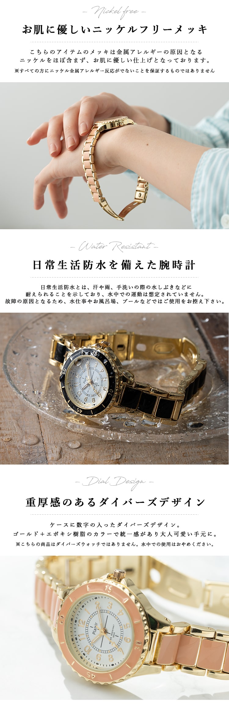 腕時計 レディース 金属アレルギー ニッケルフリー 3気圧防水 ブレスレット ブランド 20代 30代 40代 ギフト 日本製ムーブメント 1年間のメーカー保証付 Apricot