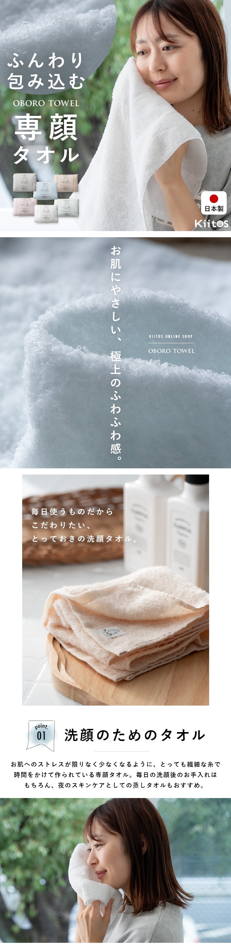 女性の敏感なお肌を優しく包み込む【専顔タオル】
