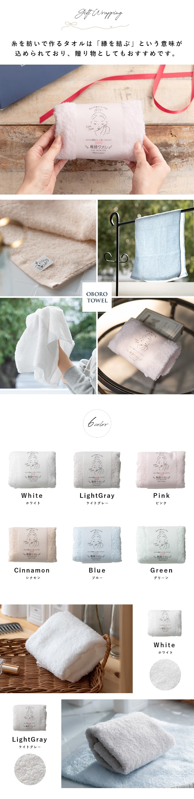 ふんわり綿100%のやさしい素材で、使う人を選ばずギフトにもぴったりです。
