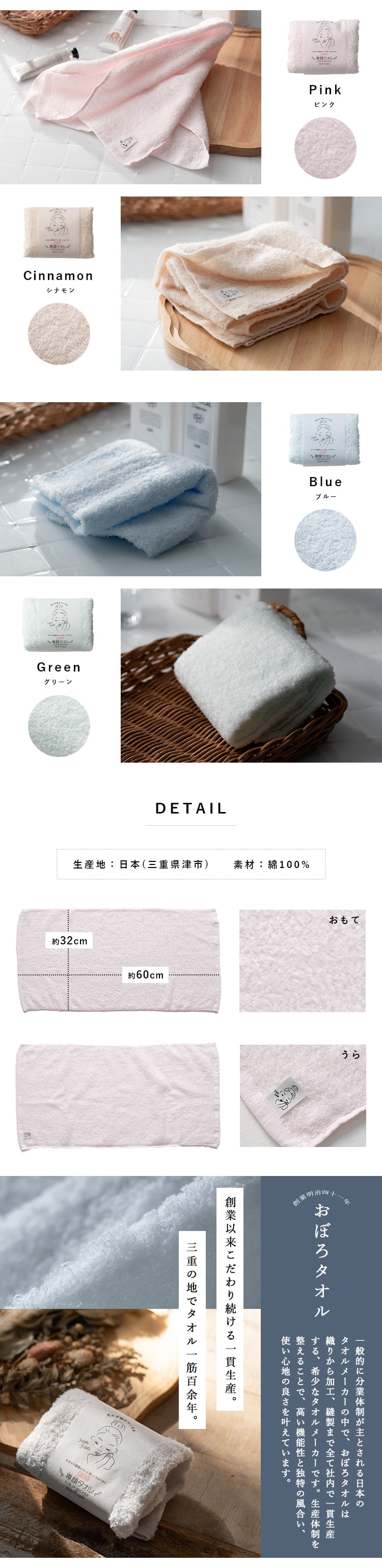 フェイスタオル ブランド おぼろタオル 専顔タオル ギフト 日本製 綿100 赤ちゃん おしゃれ お返し お礼 吸水 速乾 アトピー 乾燥肌 敏感肌 32x60cm Green