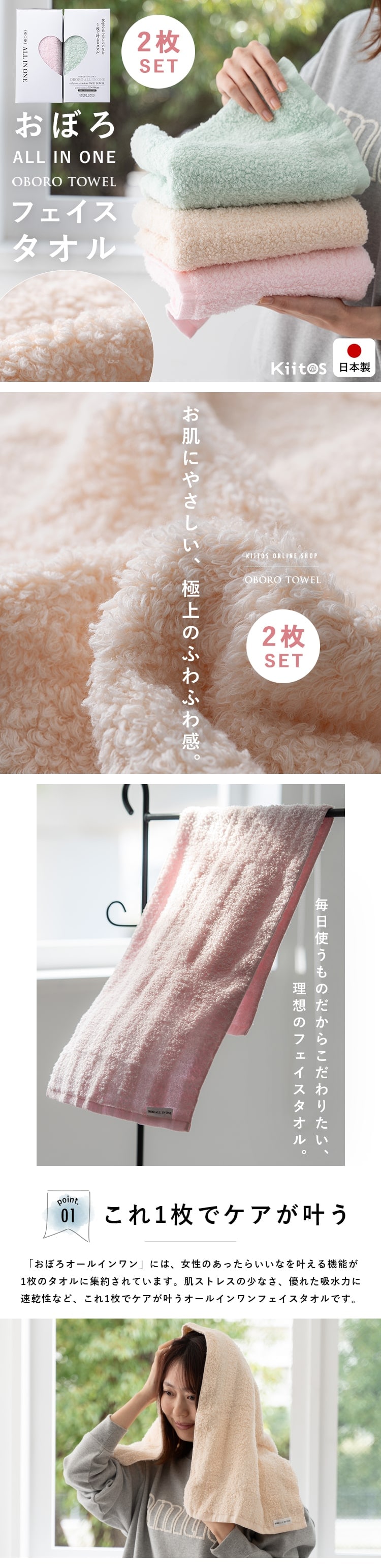 女性のあったらいいなを1枚で叶える【おぼろオールインワンフェイスタオル2枚セット】