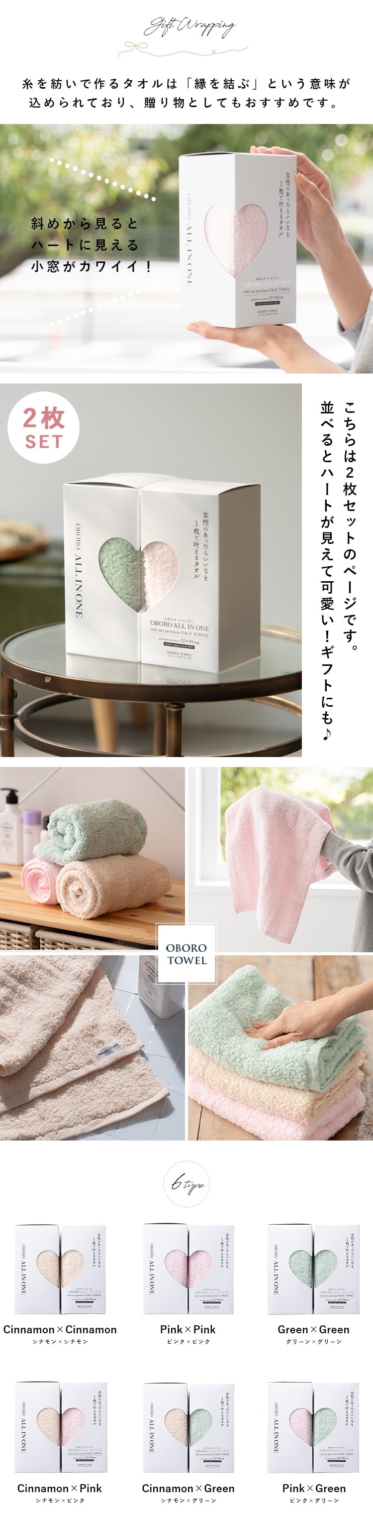 フェイスタオル 2枚セット ブランド おぼろタオル オールインワン ギフト ハート 日本製 綿100 赤ちゃん おしゃれ お返し 引き出物 吸水 敏感肌 32x90cm Cinnamon×Cinnamon