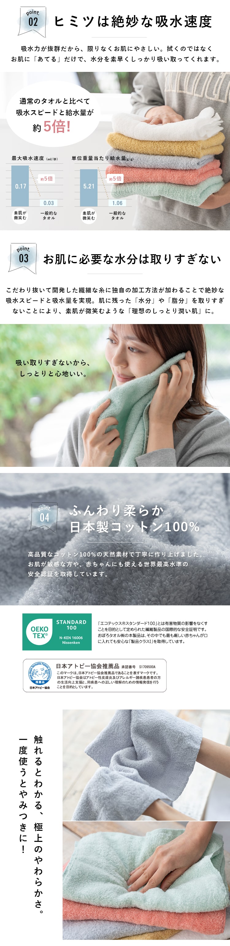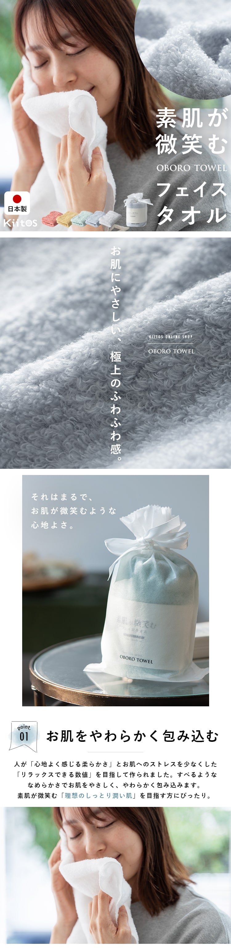 素肌が微笑むような「理想のしっとり潤い肌」を目指す方にぴったりのタオルです。