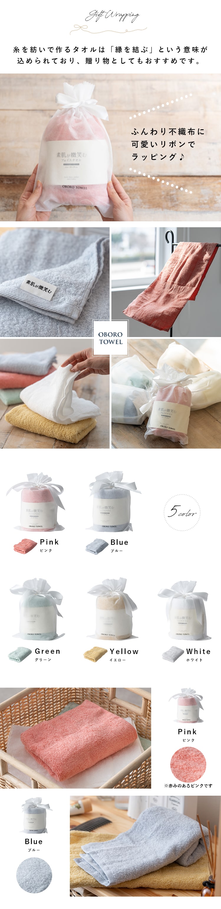 この繊細な糸が織りなす使い心地は、軽やかで柔らかく、淡さと鮮やかさを兼ね備え、マカロンのような色合いがお肌と気持ちをアップさせてくれます。