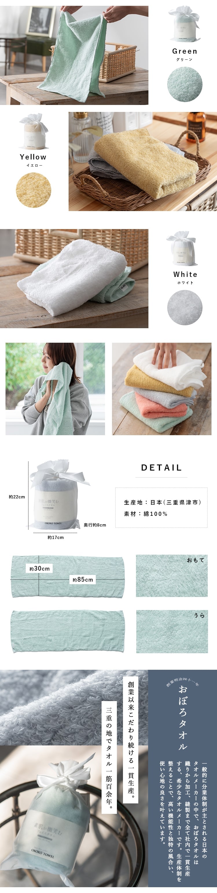 フェイスタオル ブランド おぼろタオル 素肌が微笑む ギフト 日本製 綿100 赤ちゃん おしゃれ お返し お礼 引き出物 吸水 アトピー 敏感肌 30x85cm Green