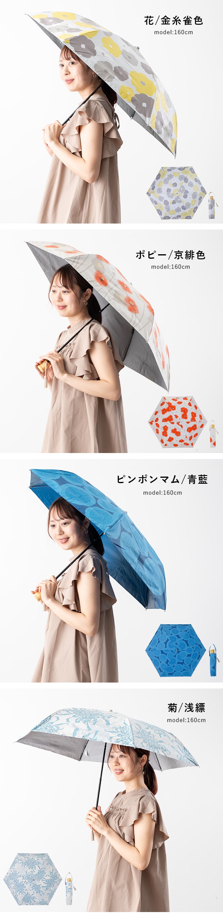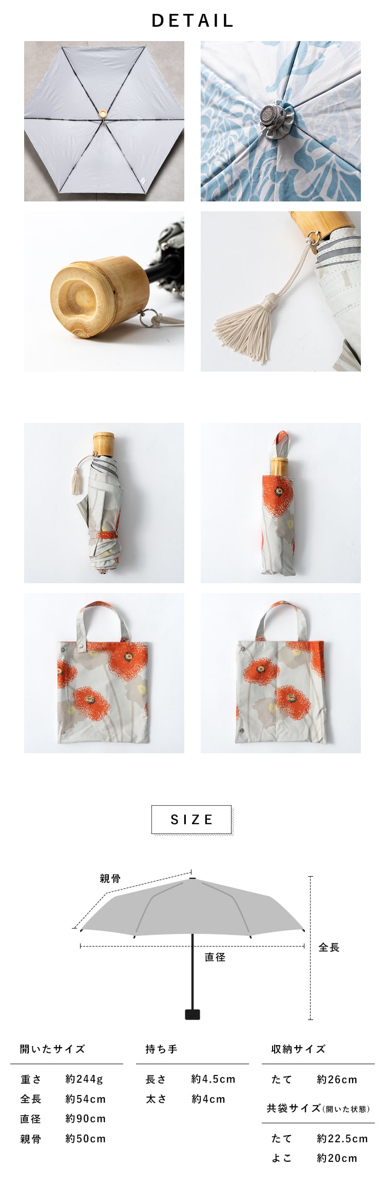 ※本製品は晴雨兼用となっておりますが本来は紫外線防止を目的に開発された生地に撥水加工を施した商品です。激しい雨や長時間雨傘としてのご使用は生地に雨水が染み込む場合がございますので、ご注意下さい。
