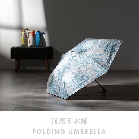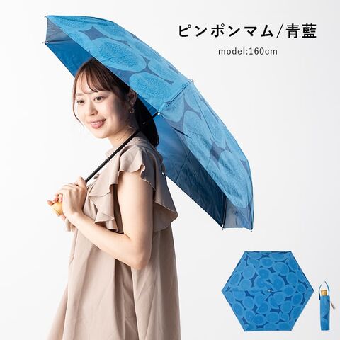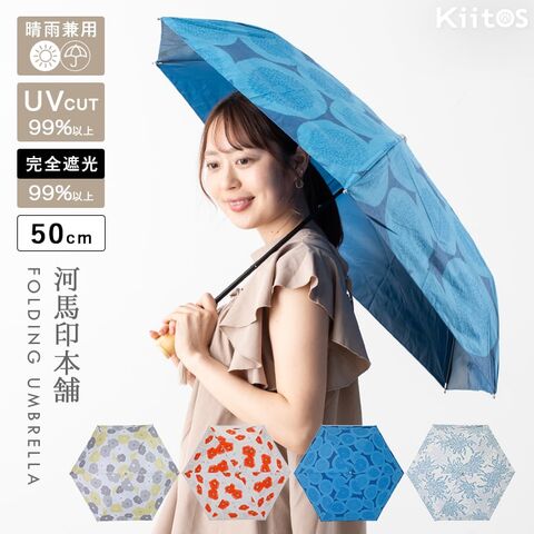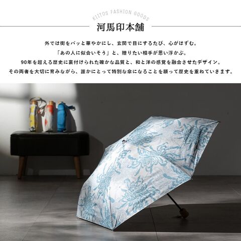 日傘 折りたたみ 軽量 50cm 遮光99% UV 晴雨兼用 ブランド 河馬印本舗 和柄 綿 ポーチ付き 遮熱 撥水 upf50+ おしゃれ 6本骨 ピンポンマム/青藍