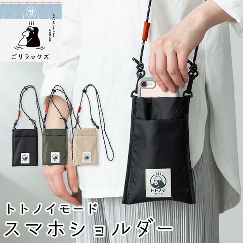 スマホショルダーバッグ スマホポーチ ごリラックス トトノイモード ミニショルダーバッグ 超軽量 サコッシュ 斜め掛け レディース メンズ ポシェット ギフト Black