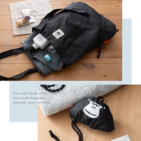 トートバッグ レディース メンズ ごリラックス トトノイモード まもるさん 折り畳み エコバッグ a4 大容量 軽量 おしゃれ サウナグッズ ギフト Black
