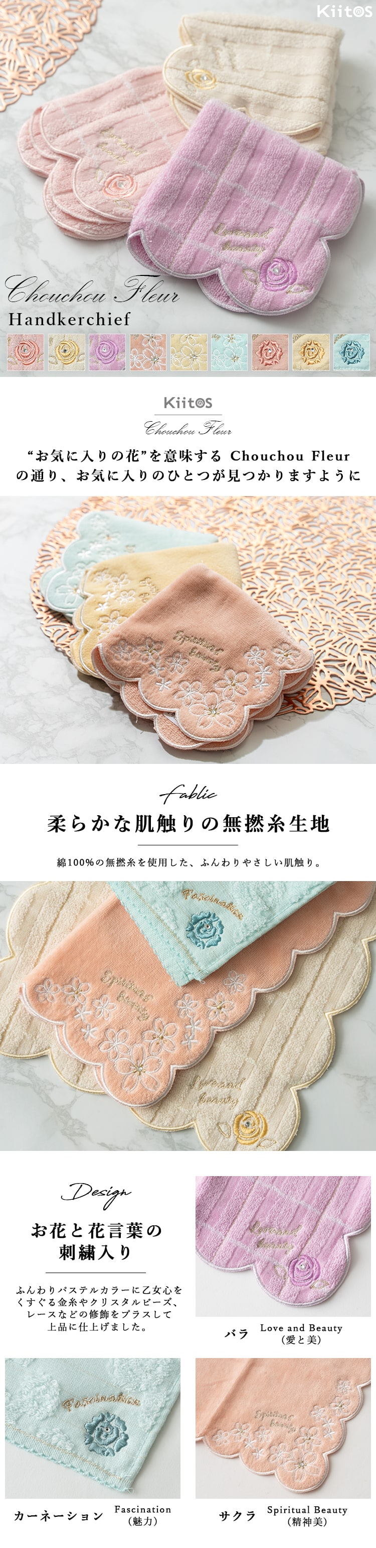 綿100%の無撚糸を使用した、ふんわりやさしい肌触りのハンカチ。