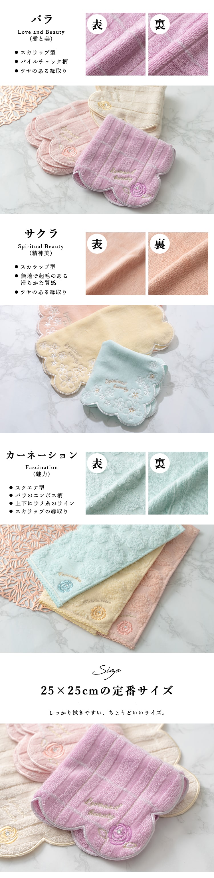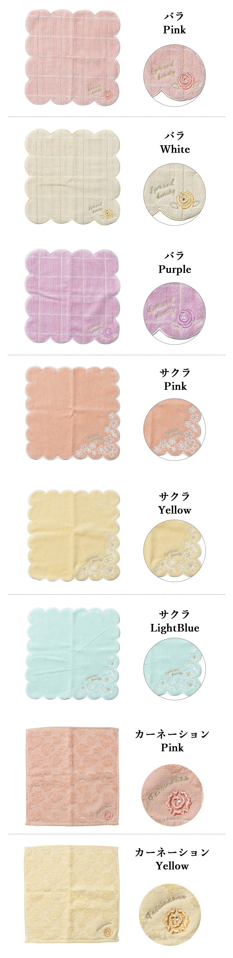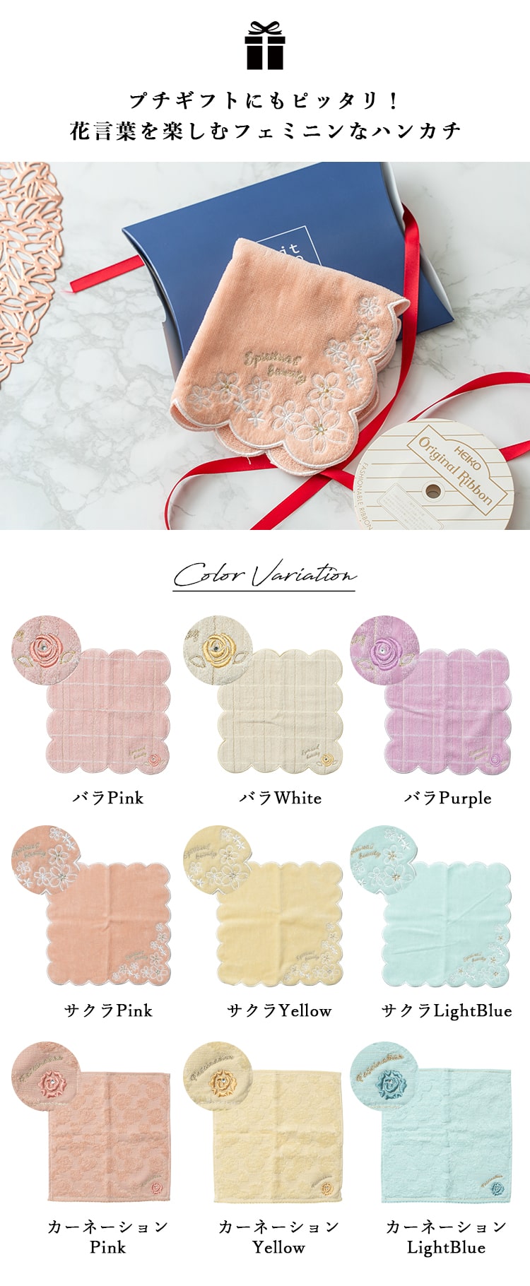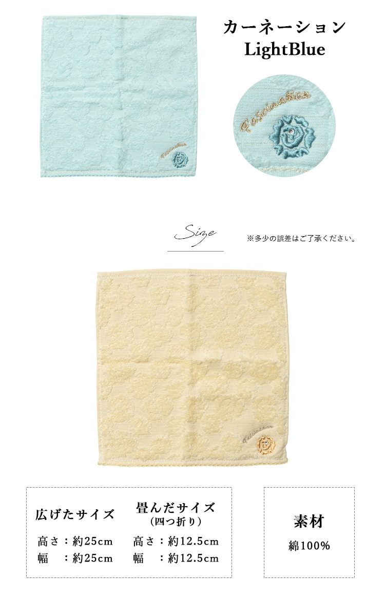 ハンカチ レディース ギフト 刺繍 花 フラワー 25cm かわいい おしゃれ タオルハンカチ 綿 無撚糸 やわらかい バラWhite