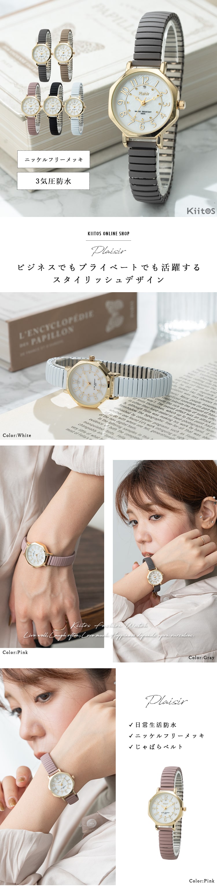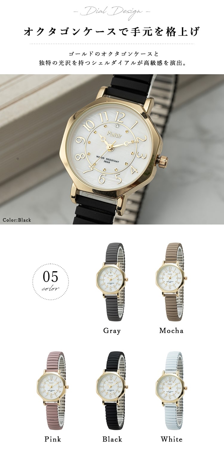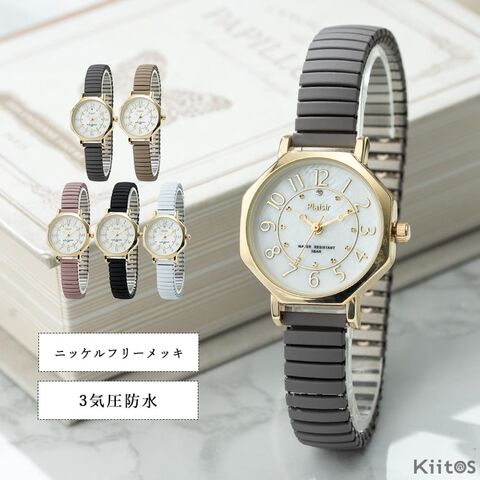 腕時計 レディース ジャバラ 3気圧防水 金属アレルギー ニッケルフリー ブランド 8角形 20代 30代 40代 日本製ムーブメント 1年間のメーカー保証付 Gray