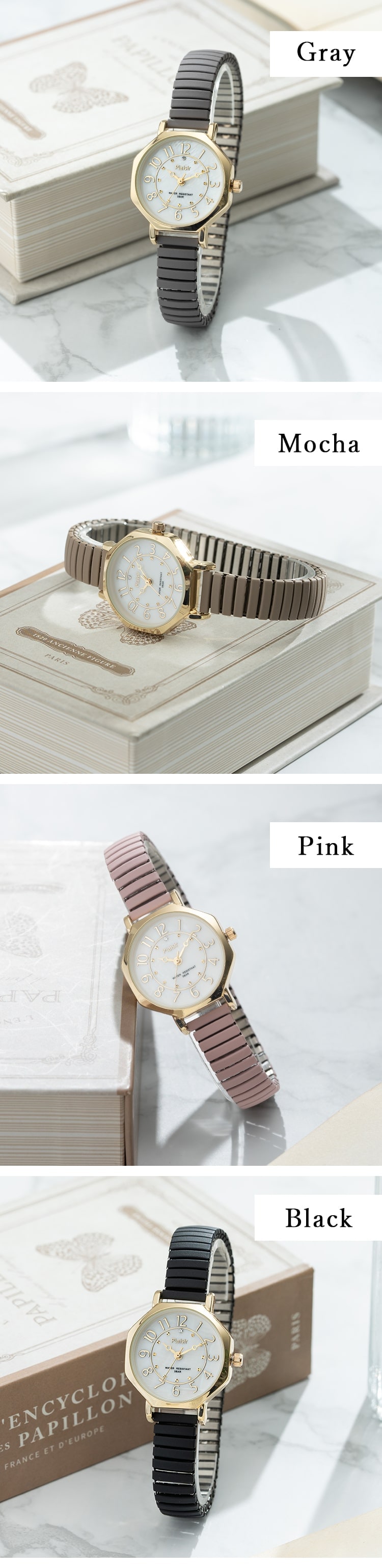 ゴールドのオクタゴンケースが上品なじゃばらウォッチ。