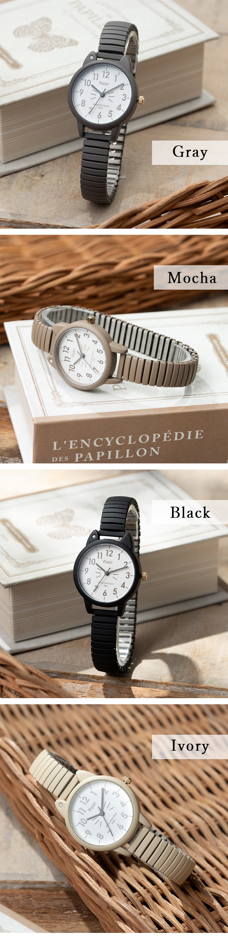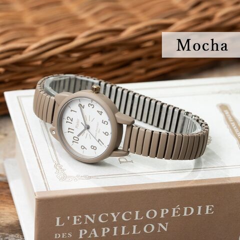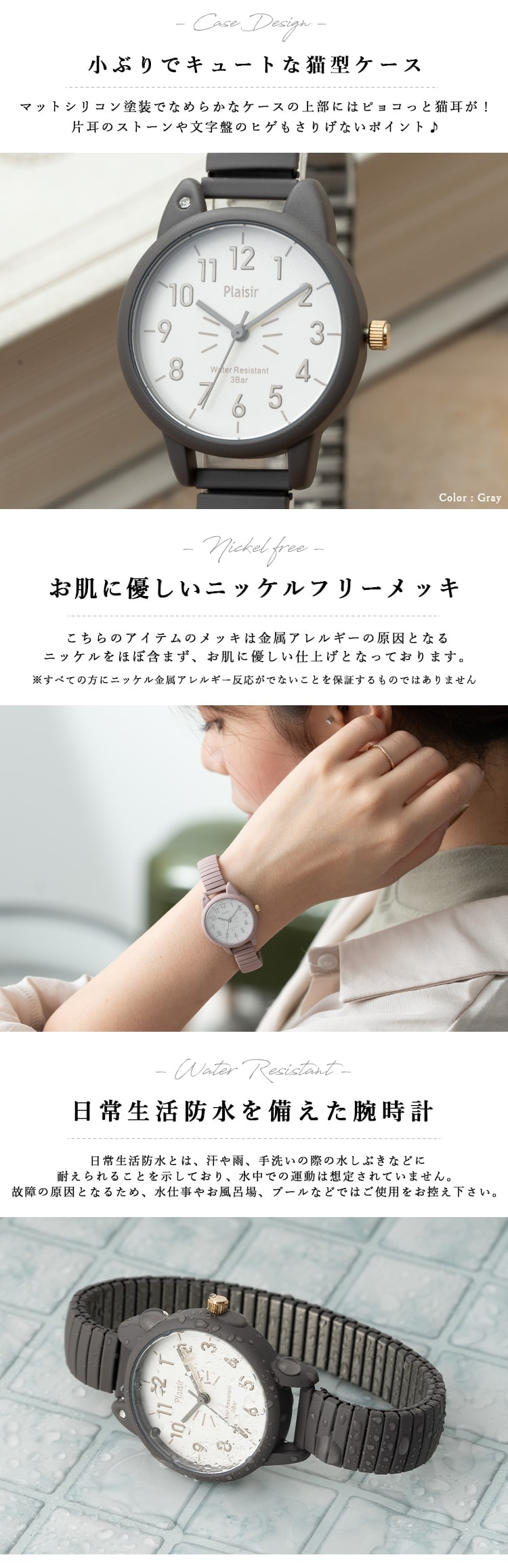 腕時計 レディース 3気圧防水 ネコモチーフ ジャバラ 金属アレルギー かわいい おしゃれ 大人 日本製ムーブメント 名入れ ギフト 1年間のメーカー保証付 Mocha