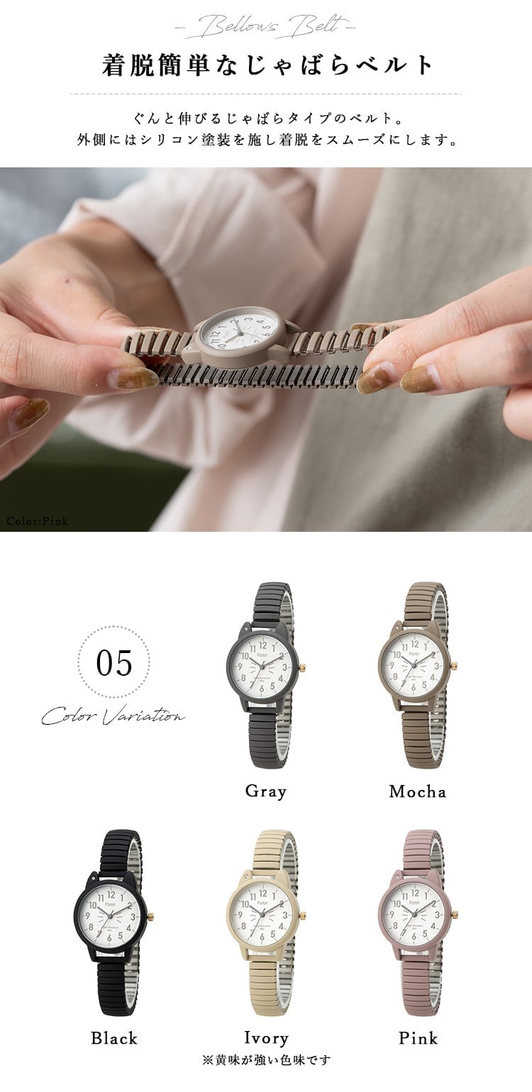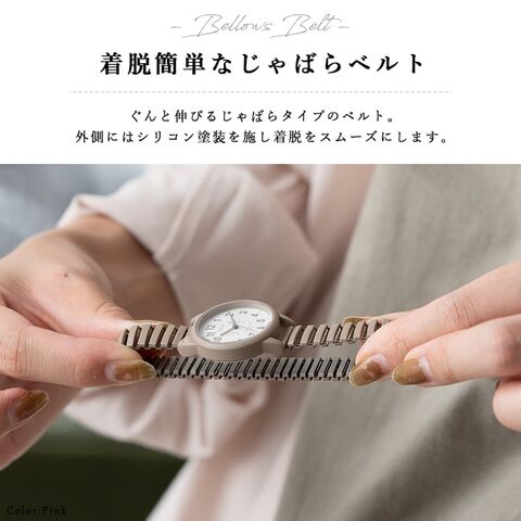 ぐんと伸びて着けやすいじゃばらベルトを採用。外側にシリコン塗装を施しているので着脱がスムーズ◎