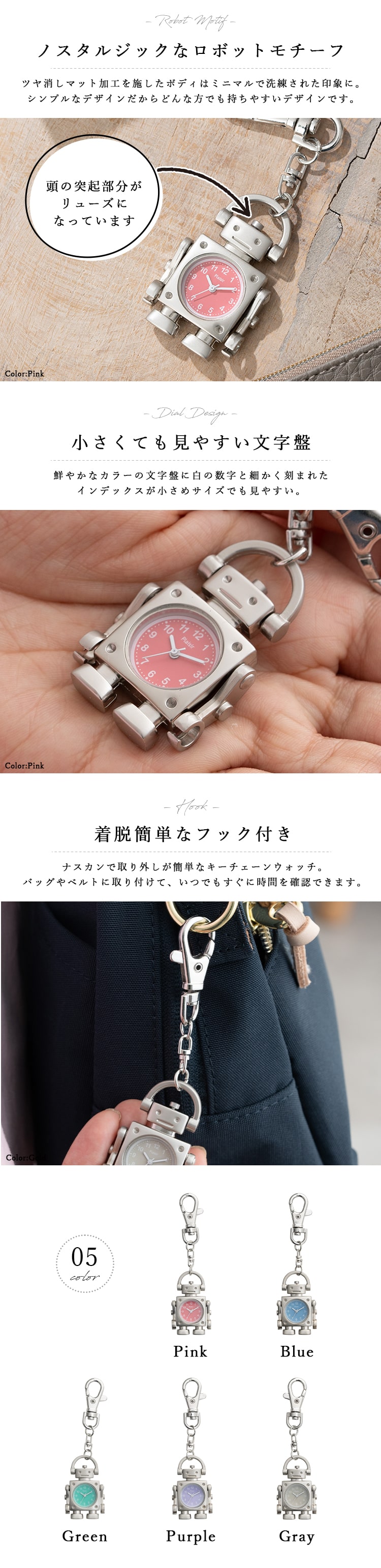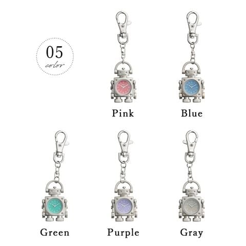 懐中時計 キーホルダー ロボットモチーフ バッグチャーム かわいい おしゃれ ギフト 日本製ムーブメント 1年間のメーカー保証付 Pink