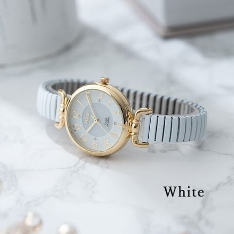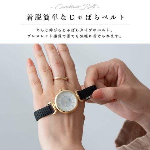 ぐんと伸びるじゃばらベルトは長さ調節が不要で、着け外しも楽チンです。