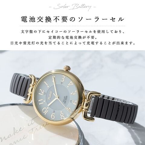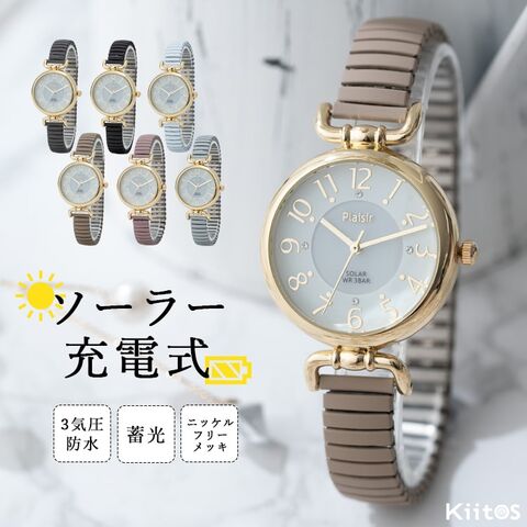 腕時計 レディース ソーラー ジャバラ 蓄光文字盤 3気圧防水 ブランド ニッケルフリー 20代 30代 40代 名入れ可 1年間のメーカー保証付 ギフト BlueGray