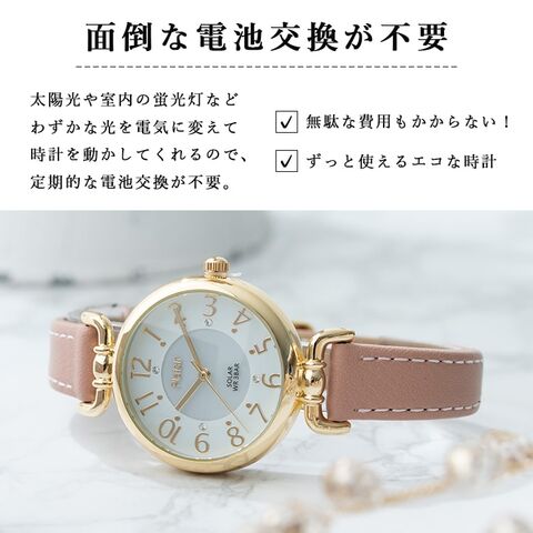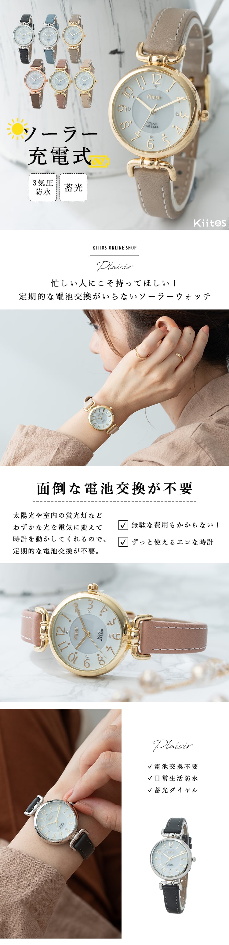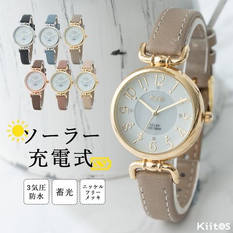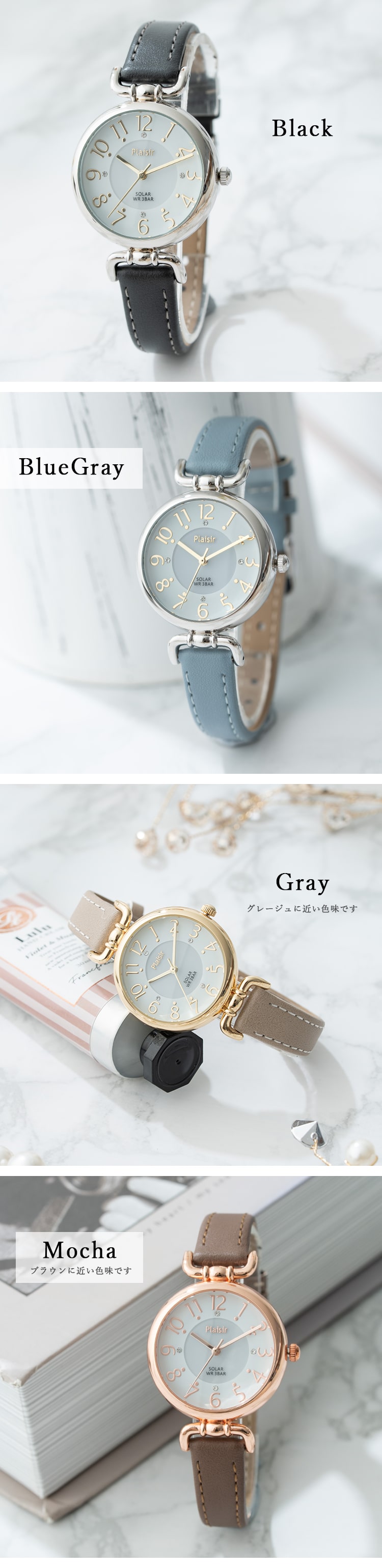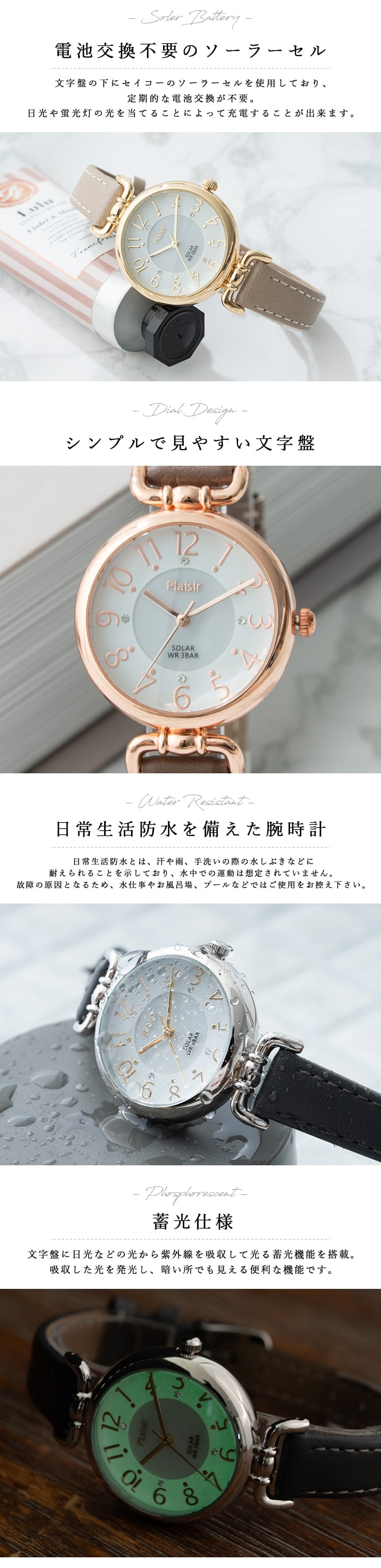 腕時計 レディース ソーラー 蓄光文字盤 3気圧防水 ブランド ニッケルフリー 20代 30代 40代 名入れ可 1年間のメーカー保証付 ギフト BlueGray