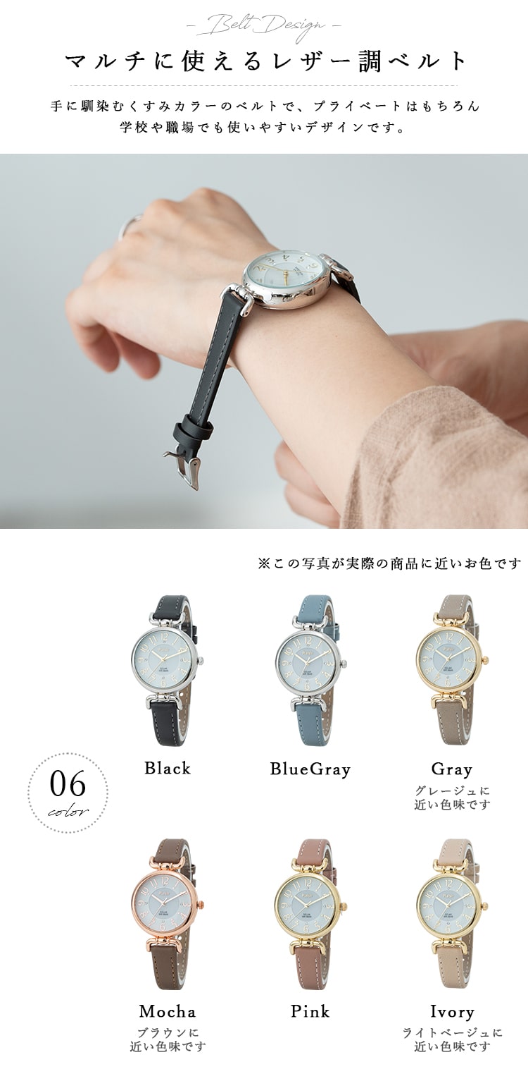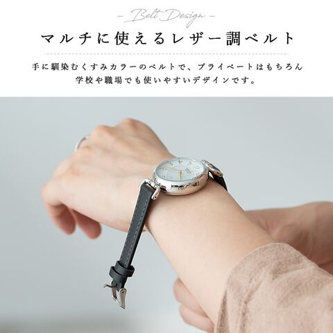 手に馴染むくすみカラーのベルトで、プライベートはもちろん学校や職場でも使いやすいデザインです。