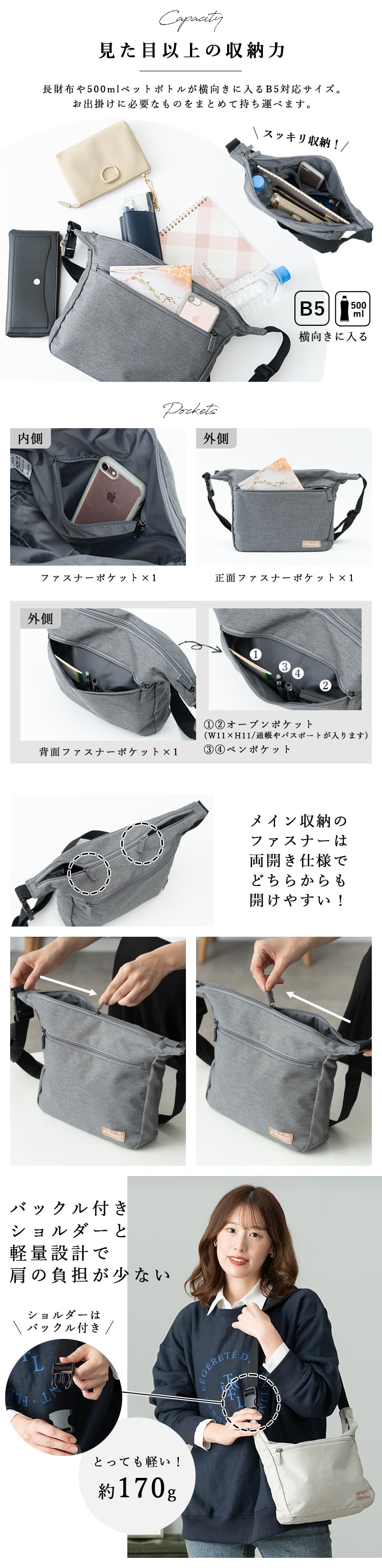 ショルダーバッグ レディース 軽量 斜め掛け 大人 おしゃれ 旅行 ファスナー付き 微撥水 b5 ペットボトル 通勤 通学 30代 40代 50代 Kinari