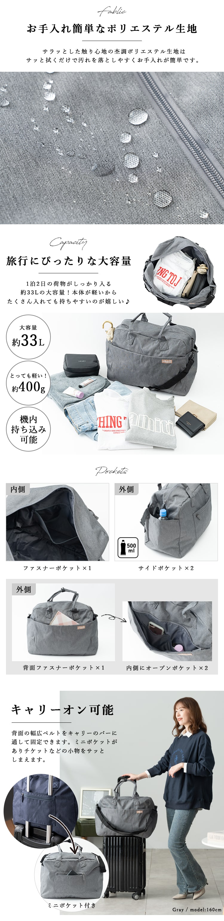 ボストンバッグ 旅行 軽量 レディース メンズ 2way 斜め掛け おしゃれ かわいい カジュアル シンプル 仕事 ジム 機内持ち込み可 キャリーオン 大容量 30l Navy