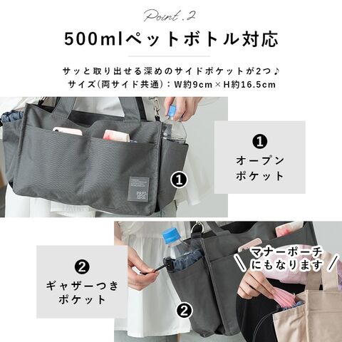 片方はギャザーが付いているのでしっかりボトルを固定できるほか、マナーポーチとしても使えます。