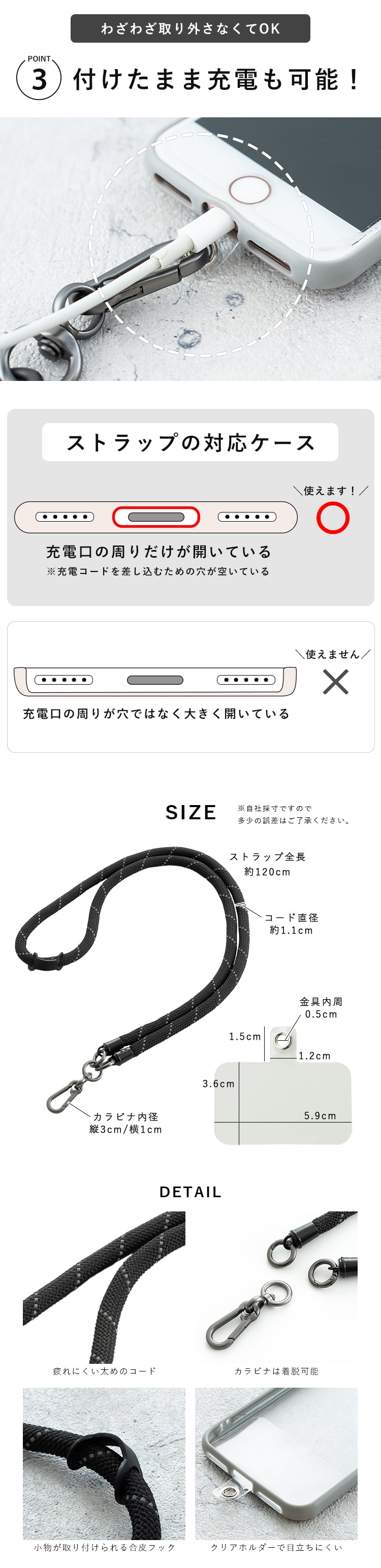 ・ストラップを付けたまま充電可能