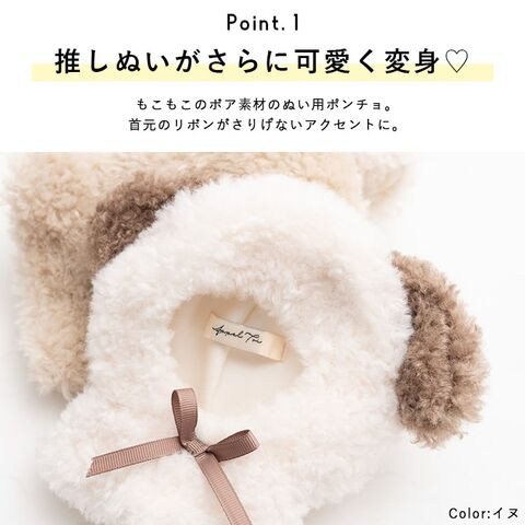 推しのぬいぐるみがより可愛くなるもこもこボア素材のぬい服ポンチョ。