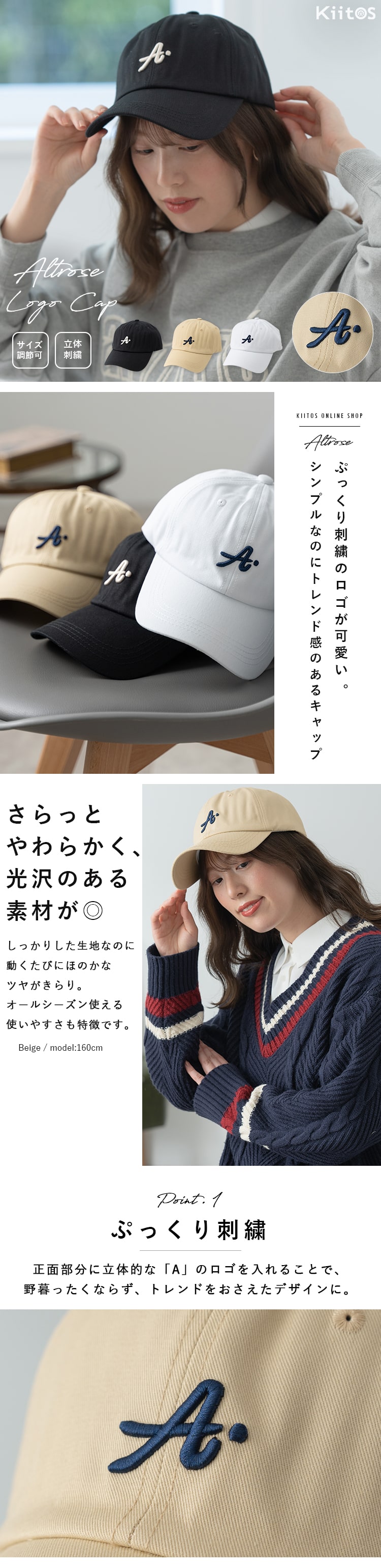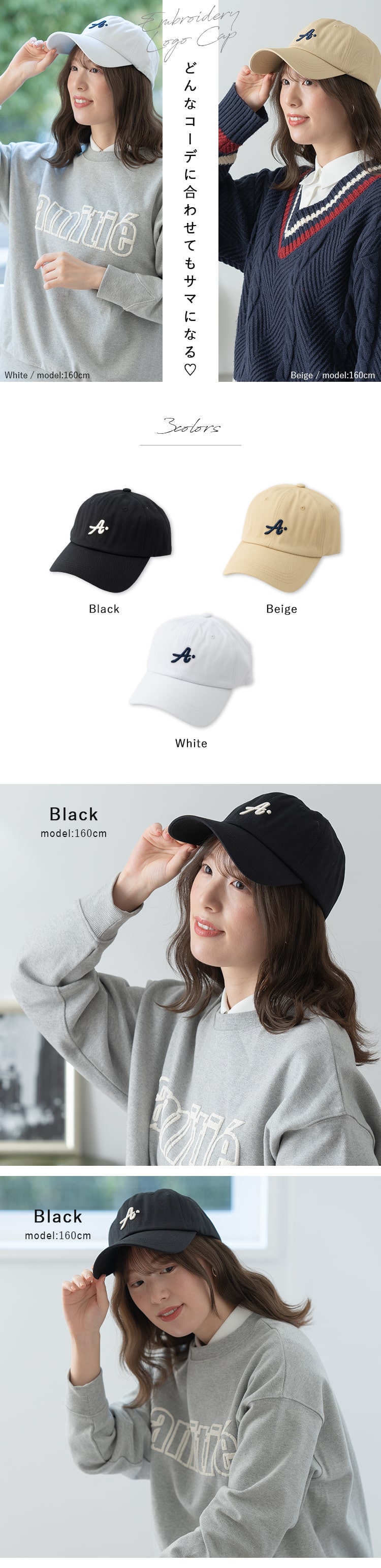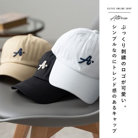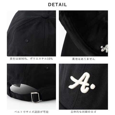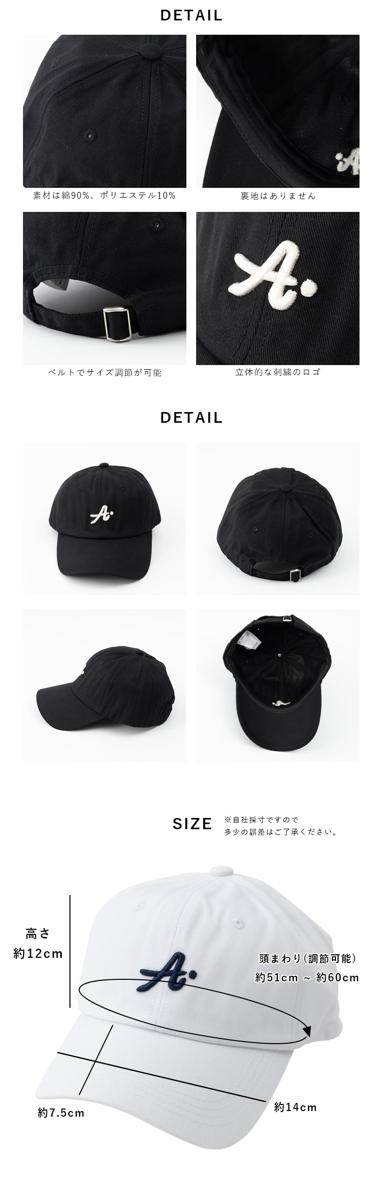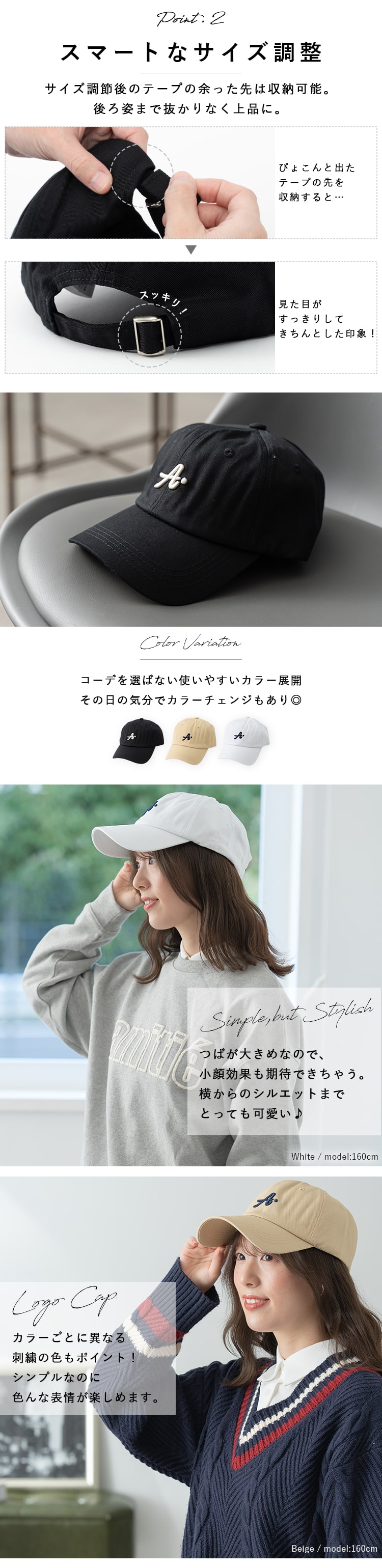 帽子 キャップ レディース Aロゴ おしゃれ 深め 綿 アルファベット 紫外線対策 日焼け防止 サイズ調節 ブランド Black