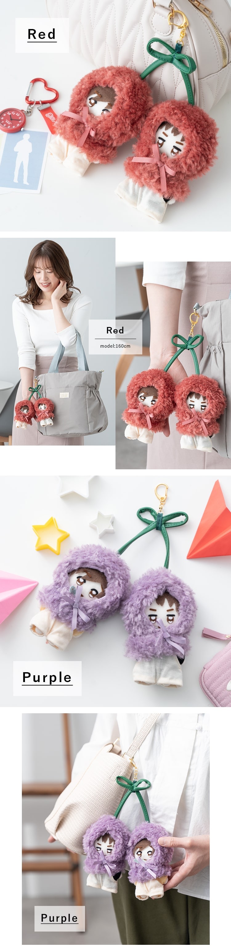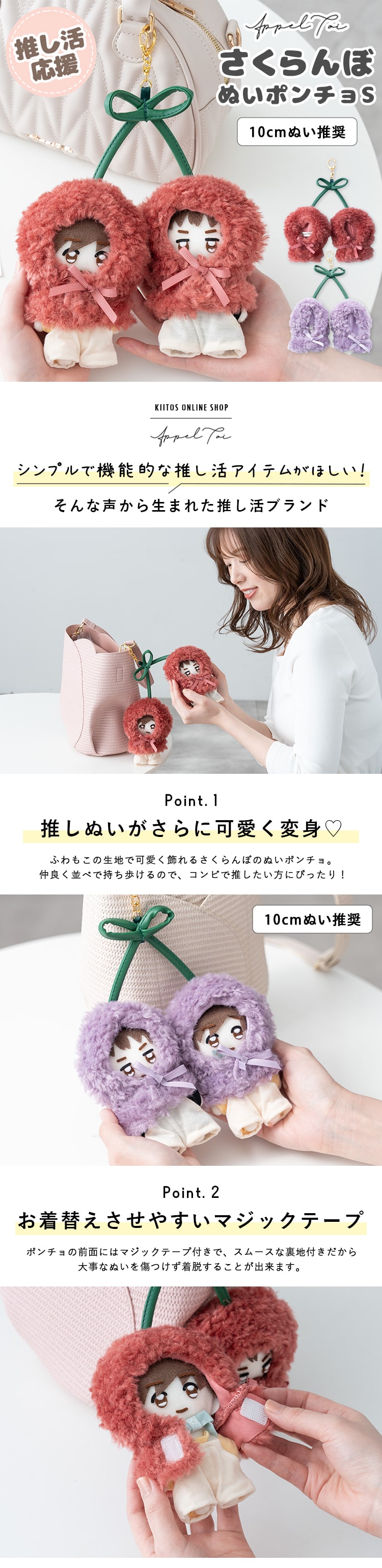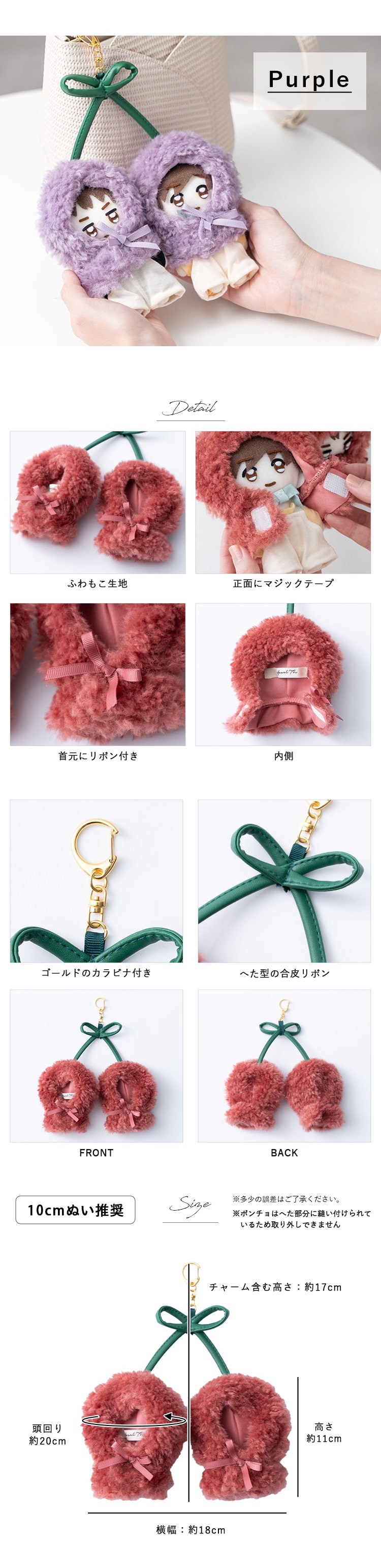 ぬいポーチ ぬい服 ポンチョ さくらんぼ 10cm 推し活 ヲタ活 マスコット 持ち運び かわいい ギフト Purple
