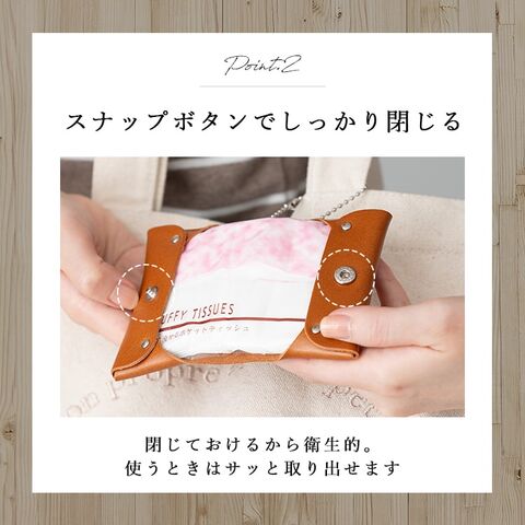 11cm×8cmのポケットティッシュに対応。二つ折りで収納するので衛生的です。