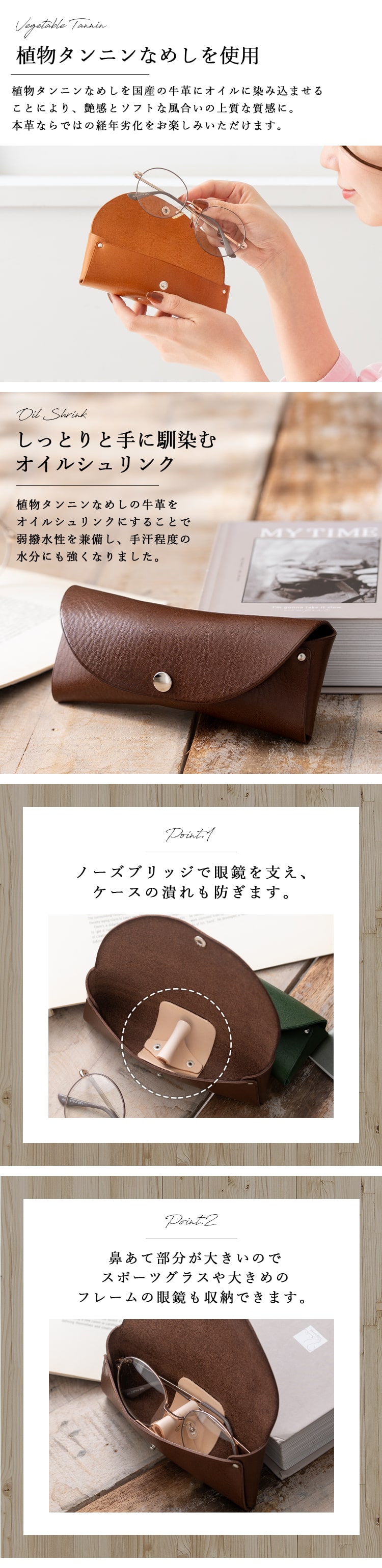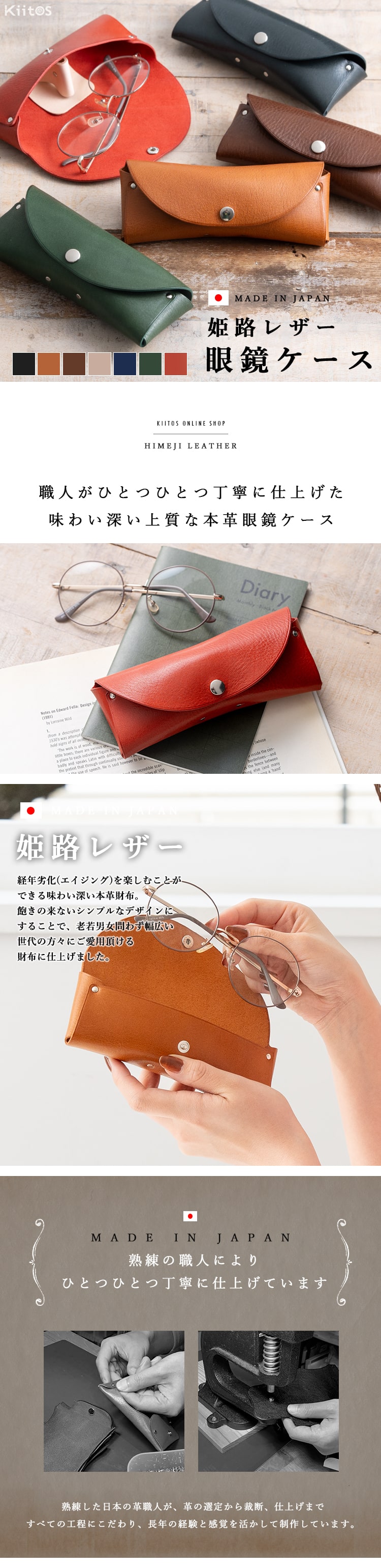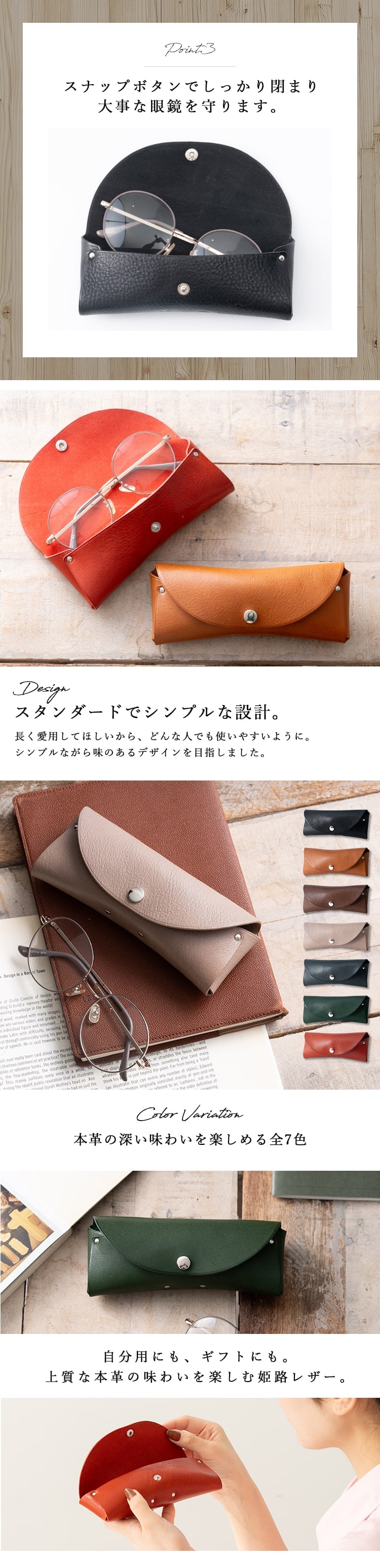 姫路レザーを使用した日本製眼鏡ケース。職人が一つ一つ丁寧に制作しています。