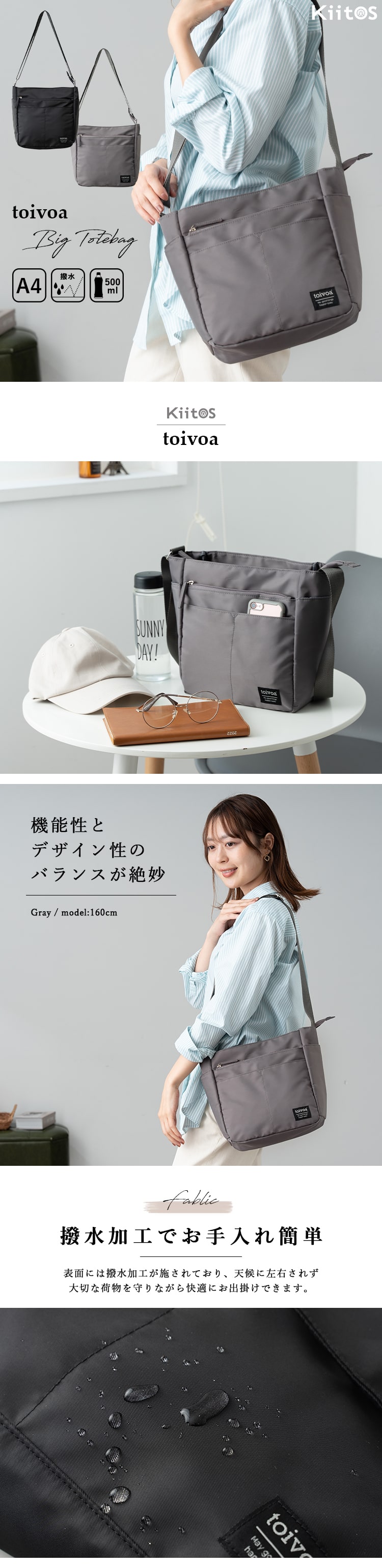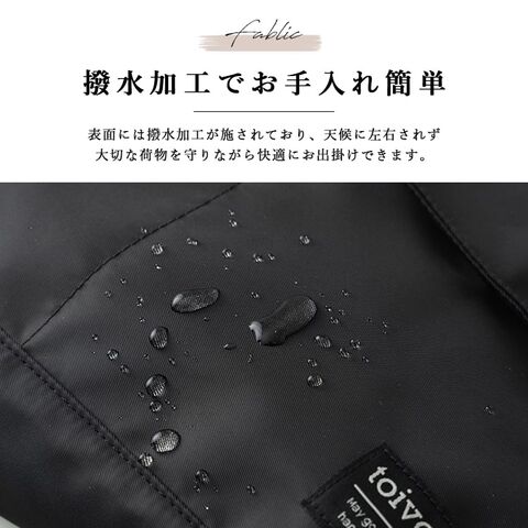 表面には撥水加工が施されており、天候に左右されず大切な荷物を守りながら快適にお出掛けできます。
