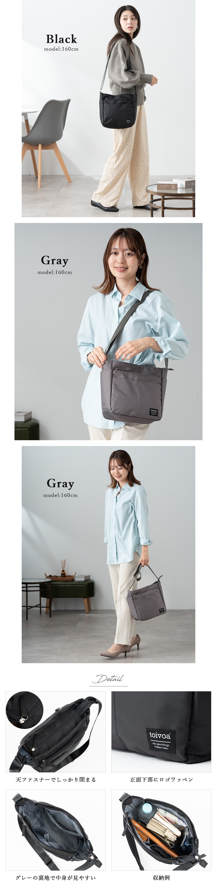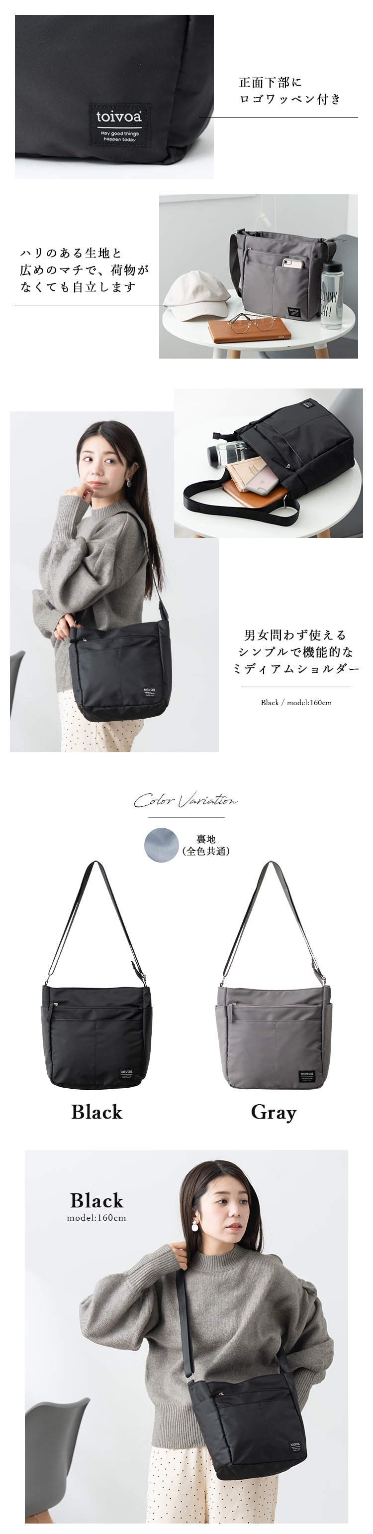 男女問わず使えるシンプルで機能的なミディアムショルダーです。