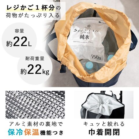 レジかご約1杯分の荷物が収納できるので、日々のお買い物におすすめです。