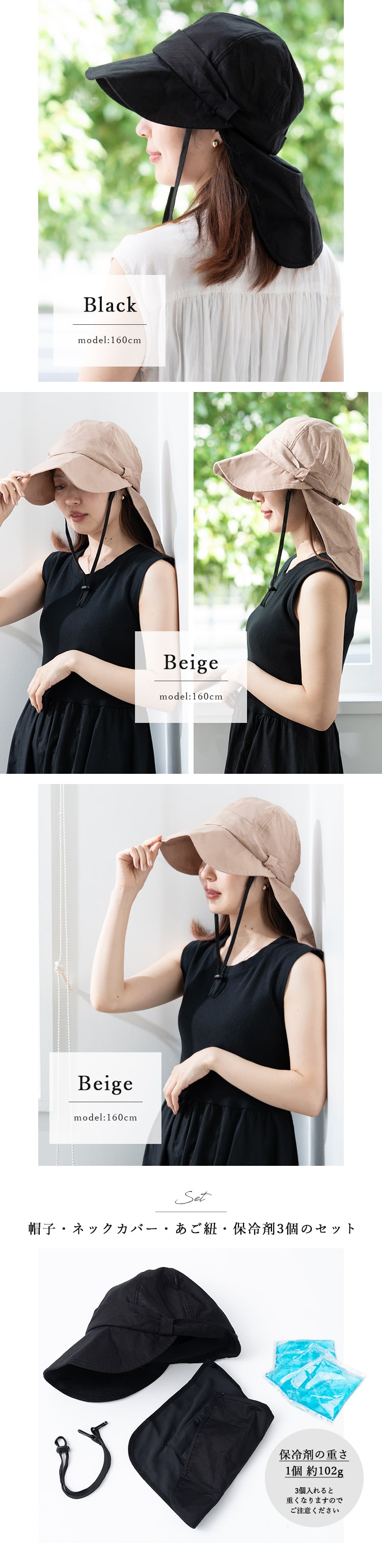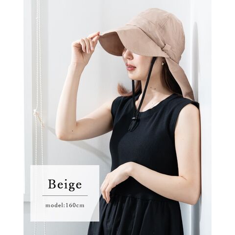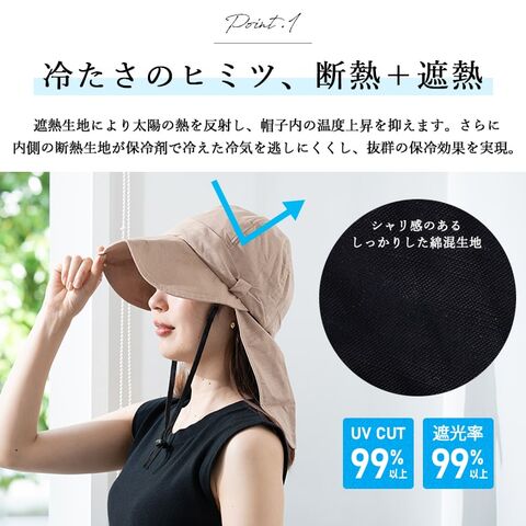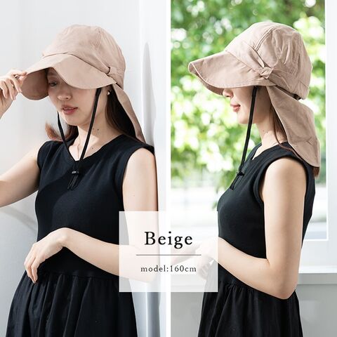 帽子 レディース uvカット キャップ リボン 冷感 保冷剤3個付き 遮熱 遮光率99%以上 麻 たれ付き つば広 サイズ調整可 洗える あご紐 春 夏 Beige